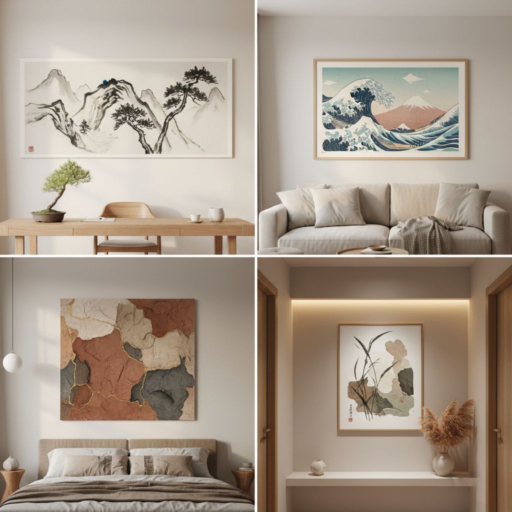Japandi art isn’t a single look. It often incorporates traditional Japanese art styles, adapted for modern interiors.