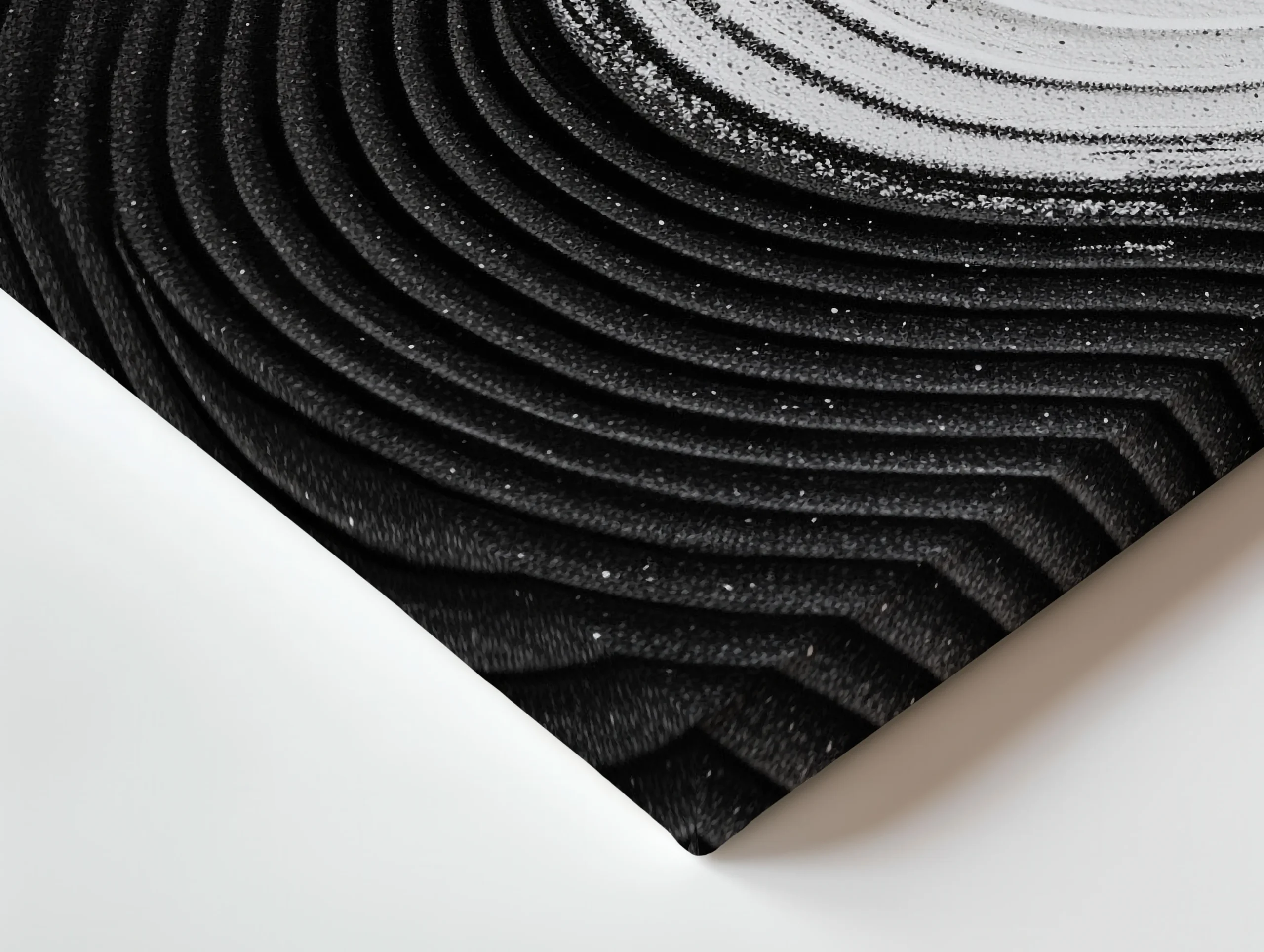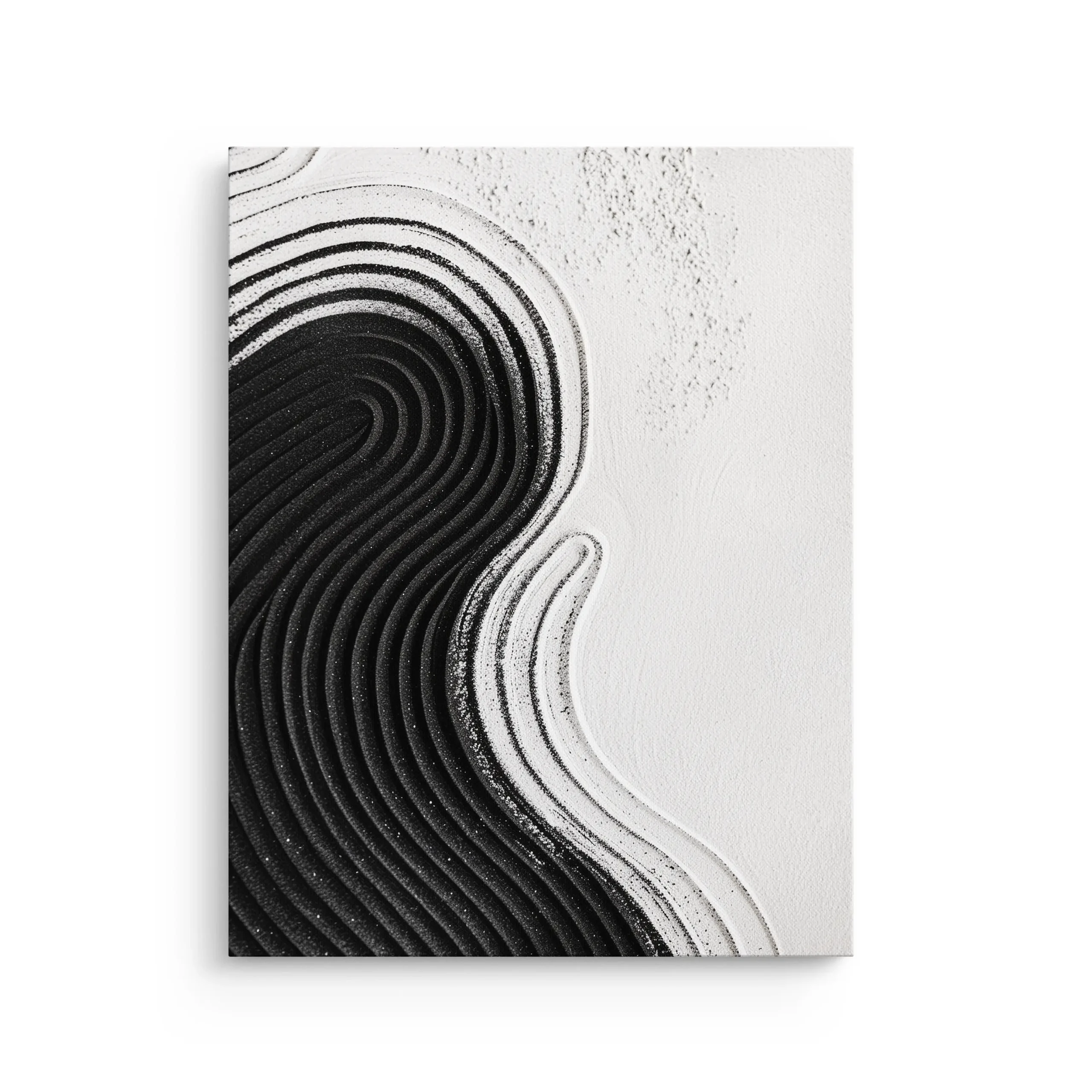 Soft, flowing ripple lines curve like a Zen garden’s raked sand, creating a quiet monochrome statement with modern balance and calm.