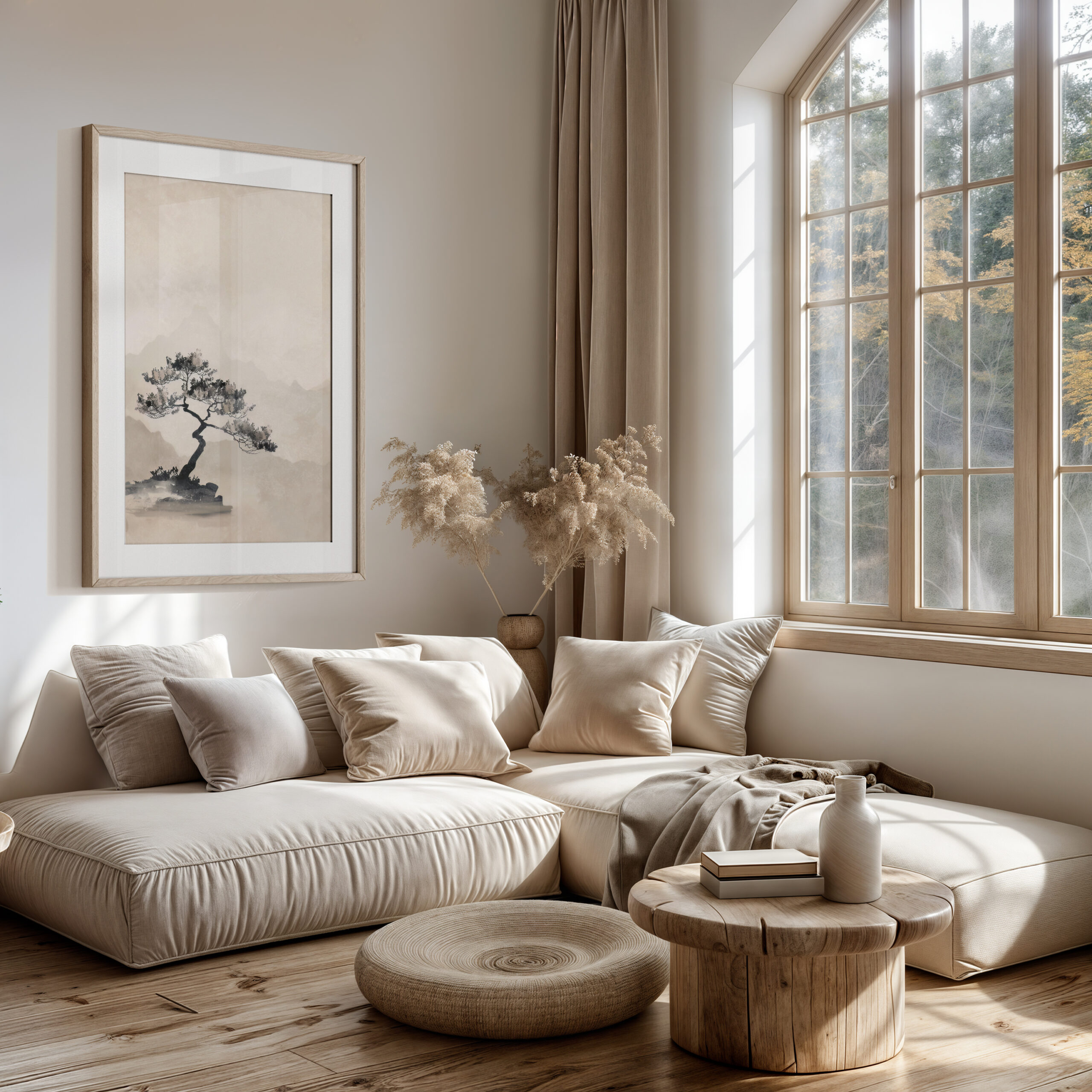 • Neutral, nature-first palette that pairs with Japandi, Scandinavian, and modern styles