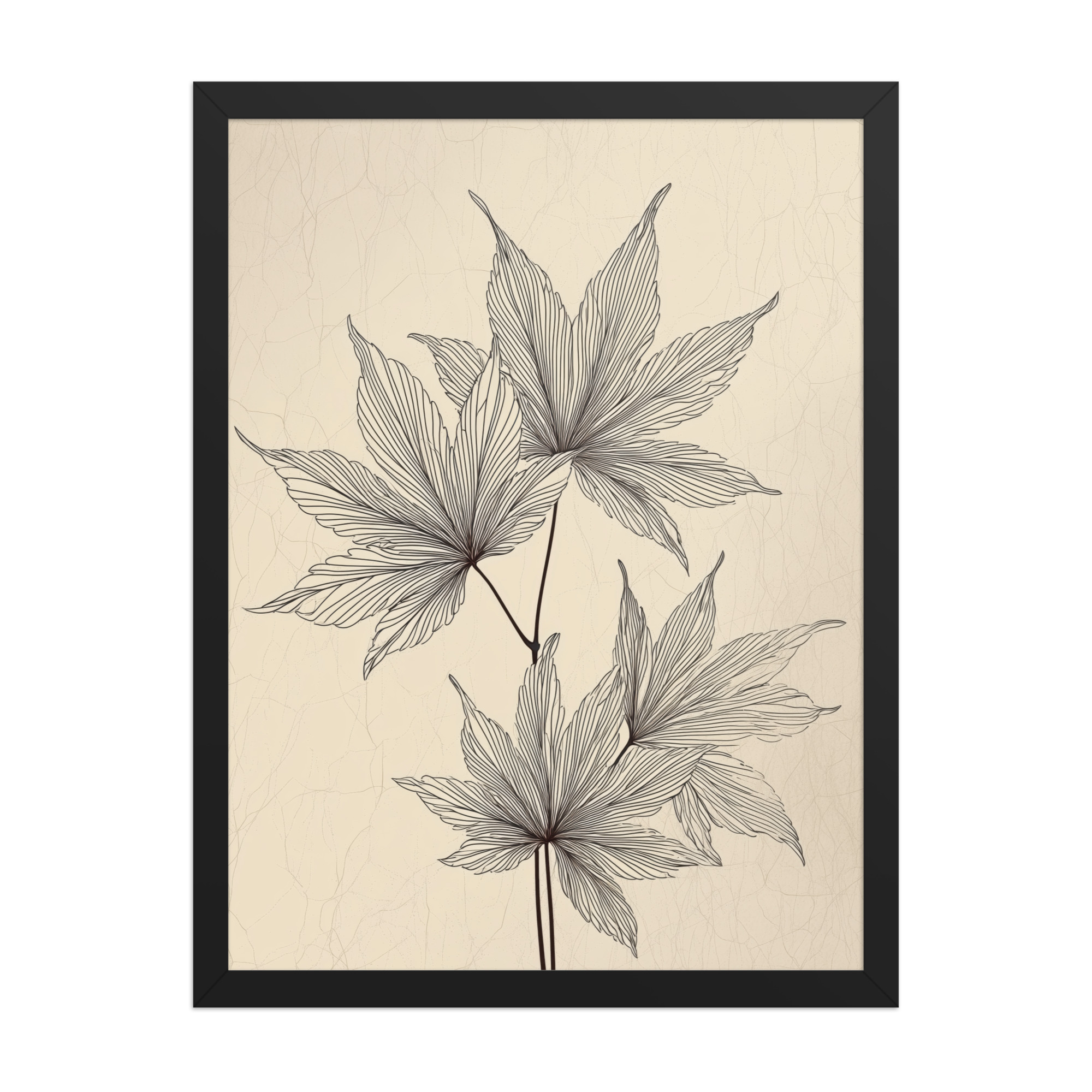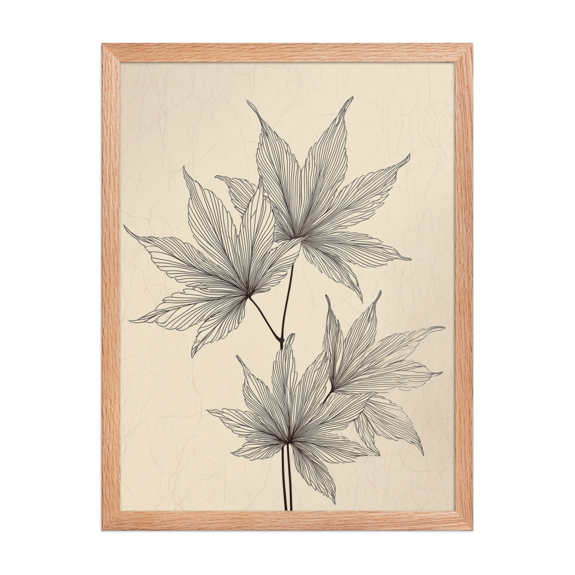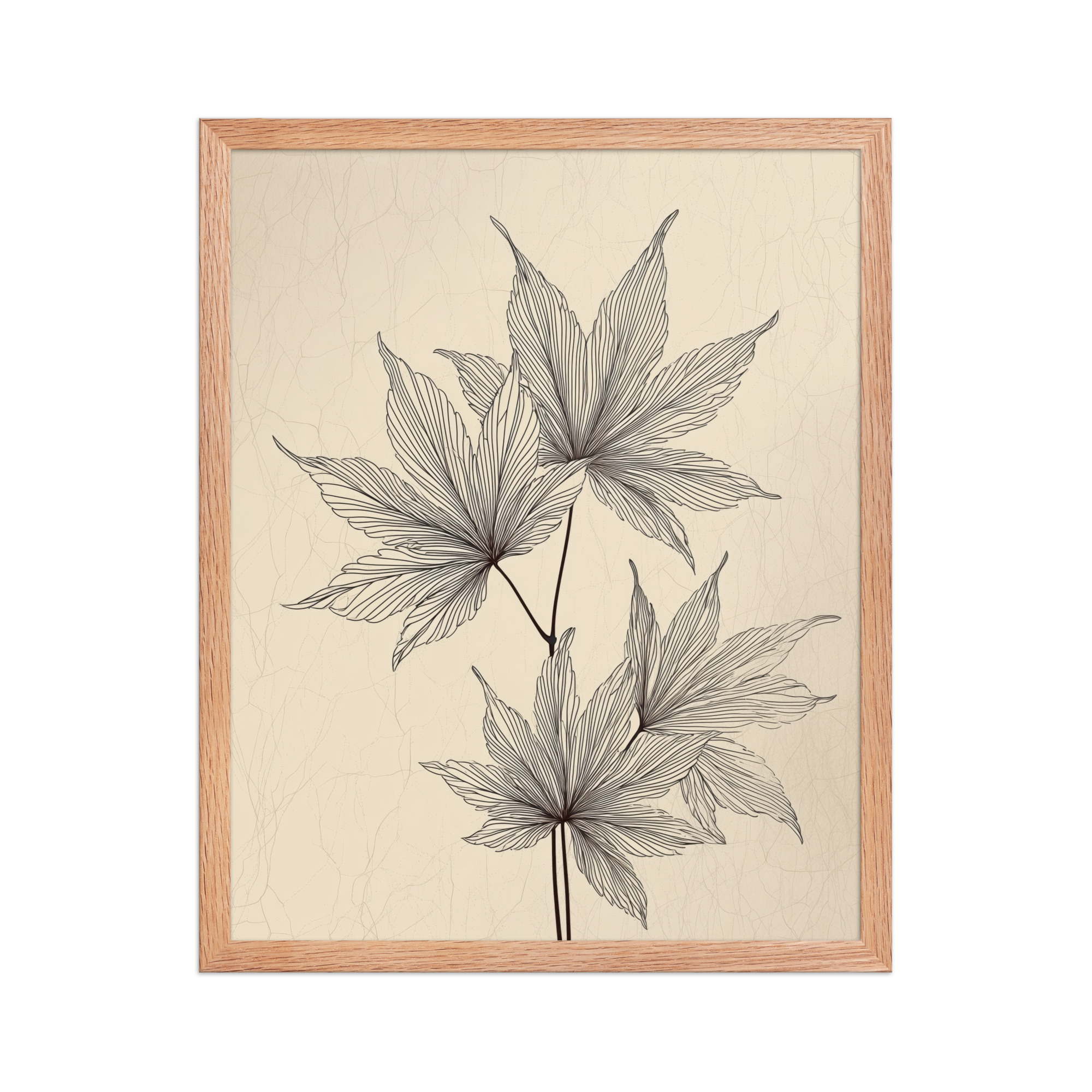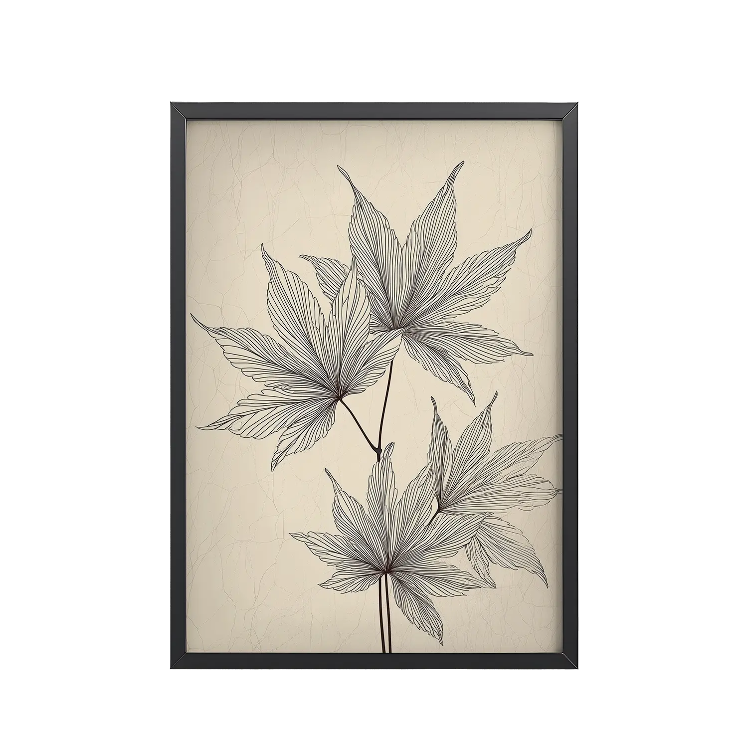 Delicate Branch celebrates the quiet grace of the Japanese maple. Crisp, hand-drawn veins fan across airy negative space, while a subtle parchment texture adds warmth. The result is a refined botanical study that brings balance to modern, minimalist interiors.