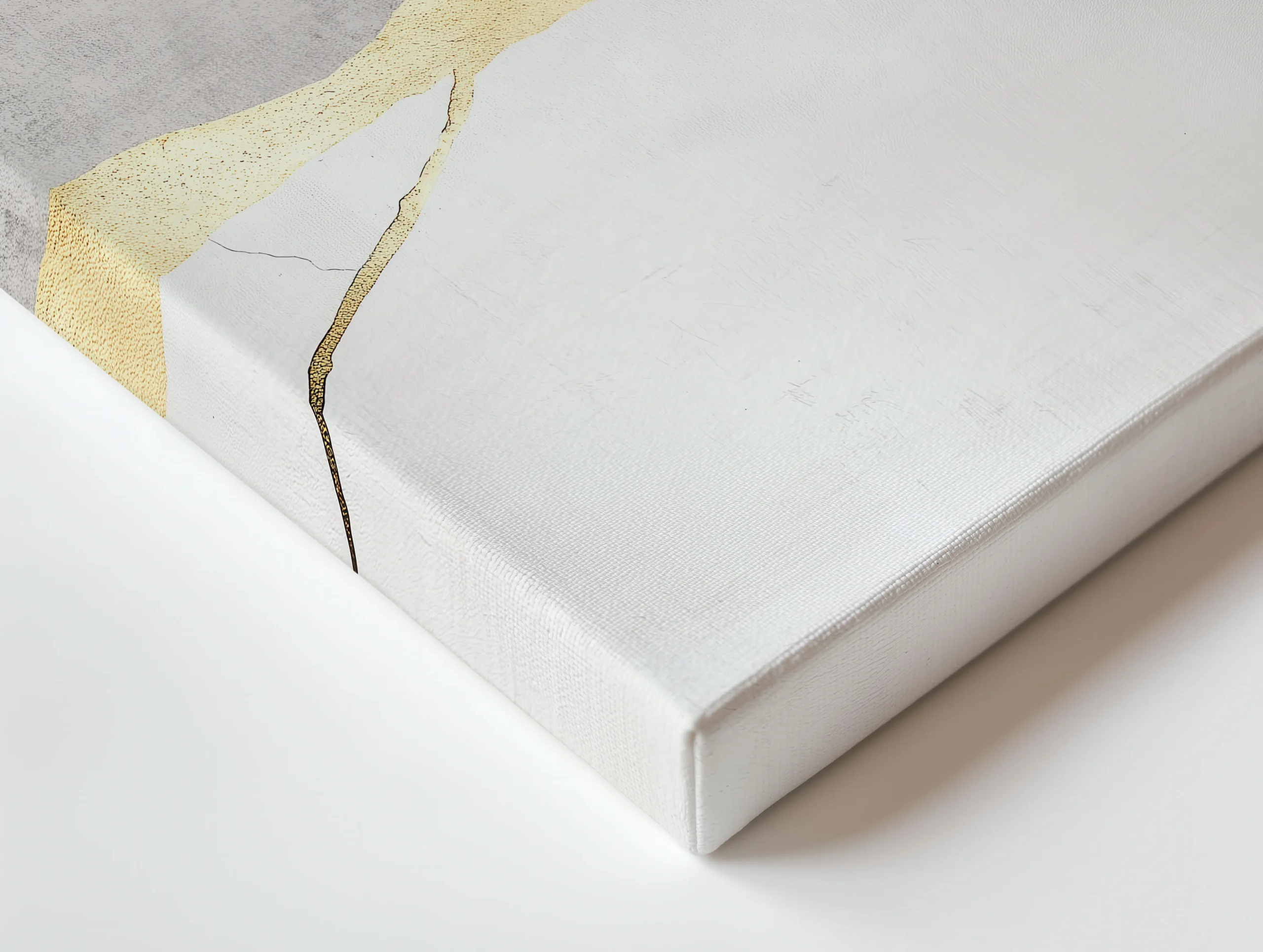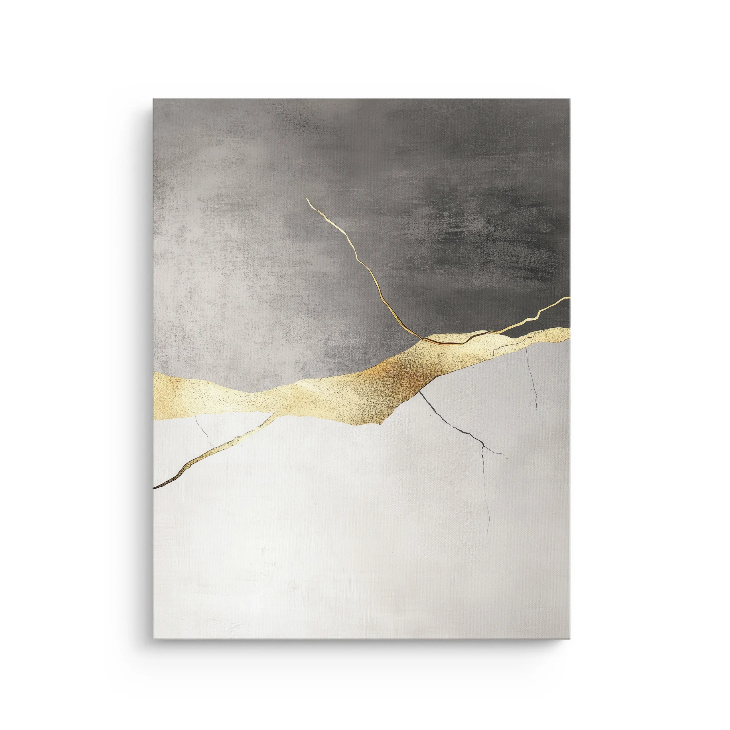 Soft concrete-like grays meet calm white space, joined by a refined gold Kintsugi seam that feels like a quiet turning point. The balanced composition brings luxury, stillness, and modern Japandi harmony to the room.