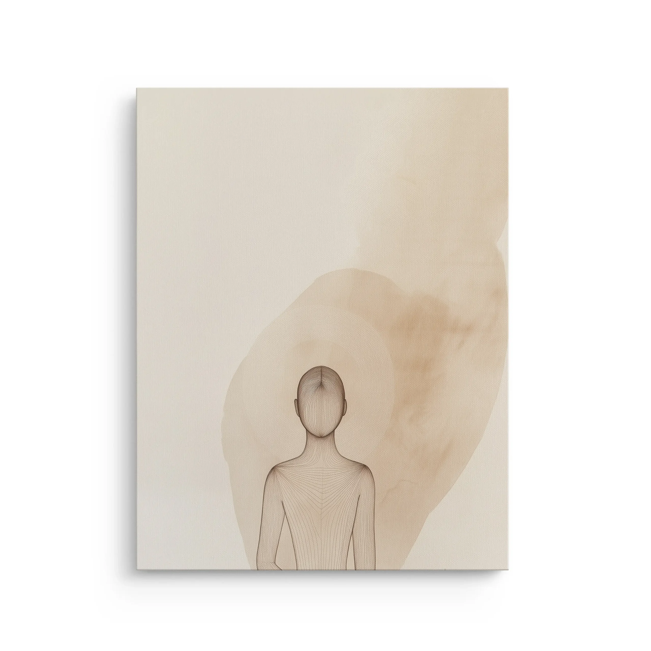 A serene minimalist figure in soft neutral tones, designed to bring calm and balance to Japandi and modern spaces, printed on a premium thin canvas and ready to hang.
