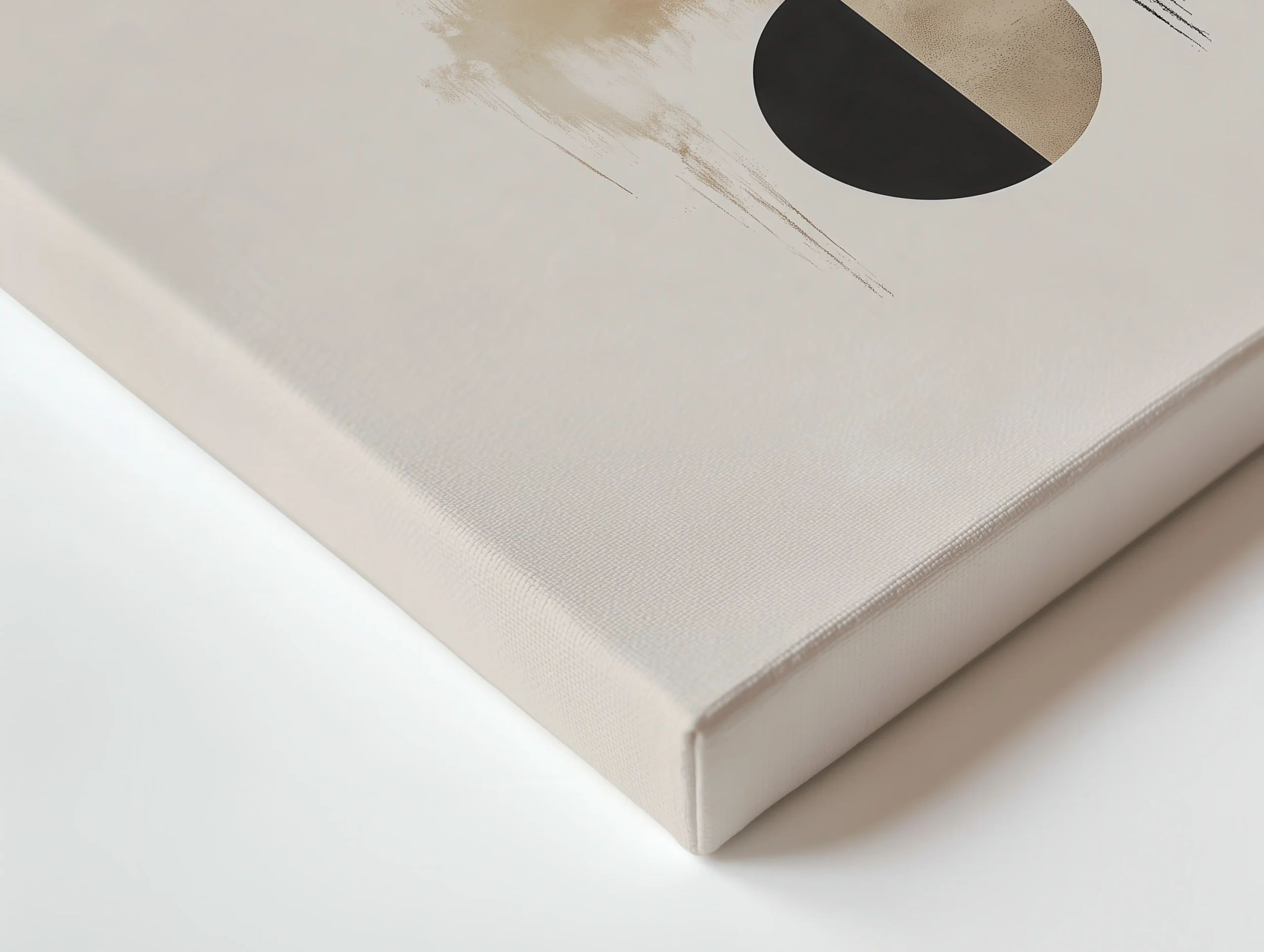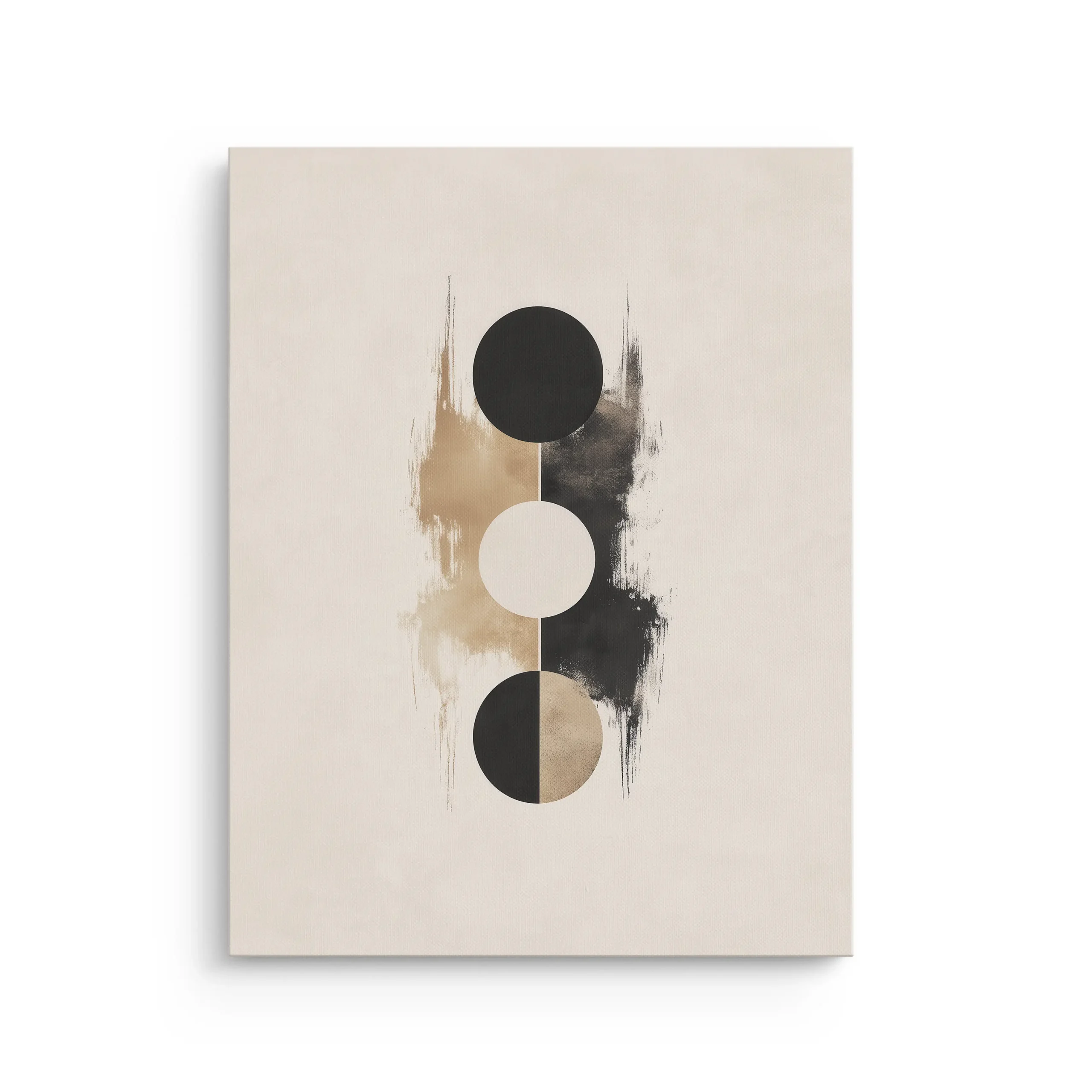 Three stacked circles sit over subtle brush textures in warm sand and deep charcoal, creating a quiet, modern balance. The clean geometry and softened edges keep the look minimal yet expressive.