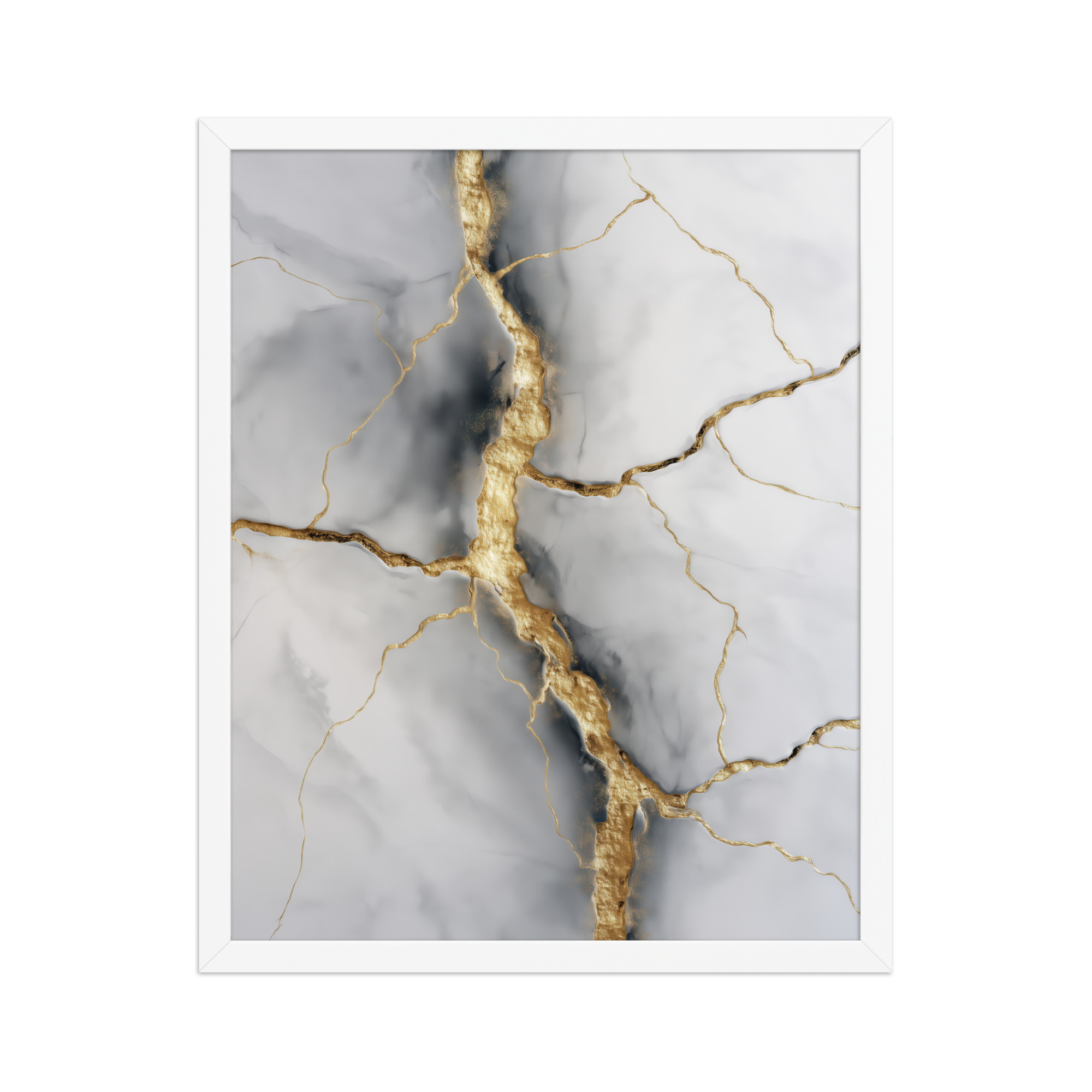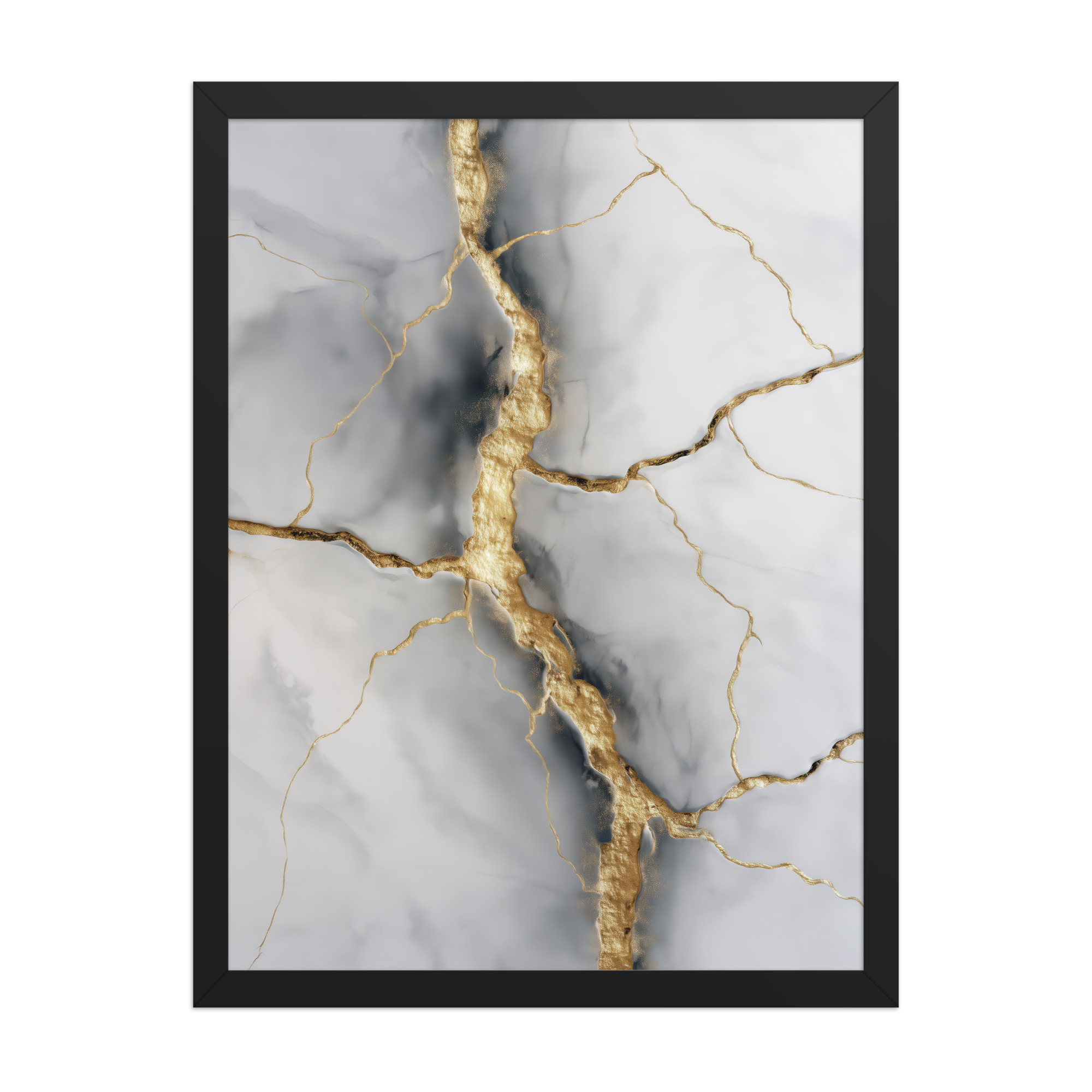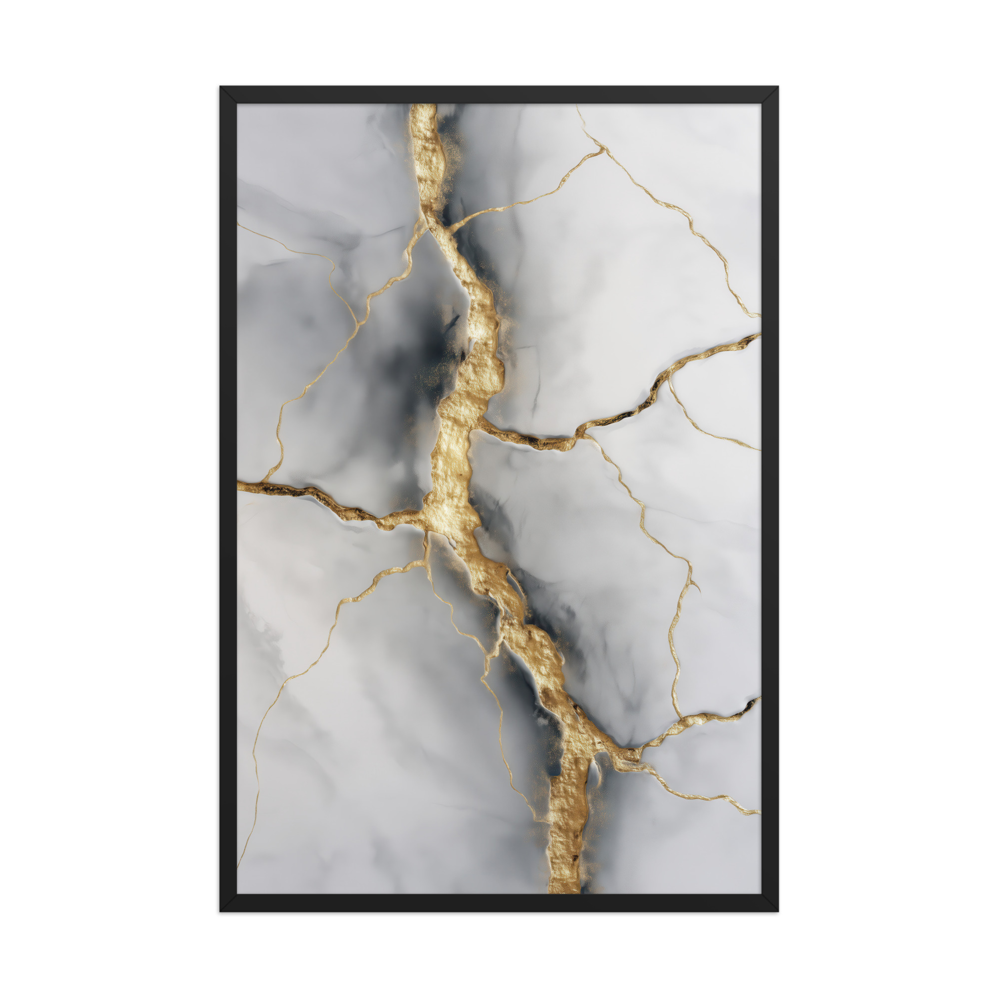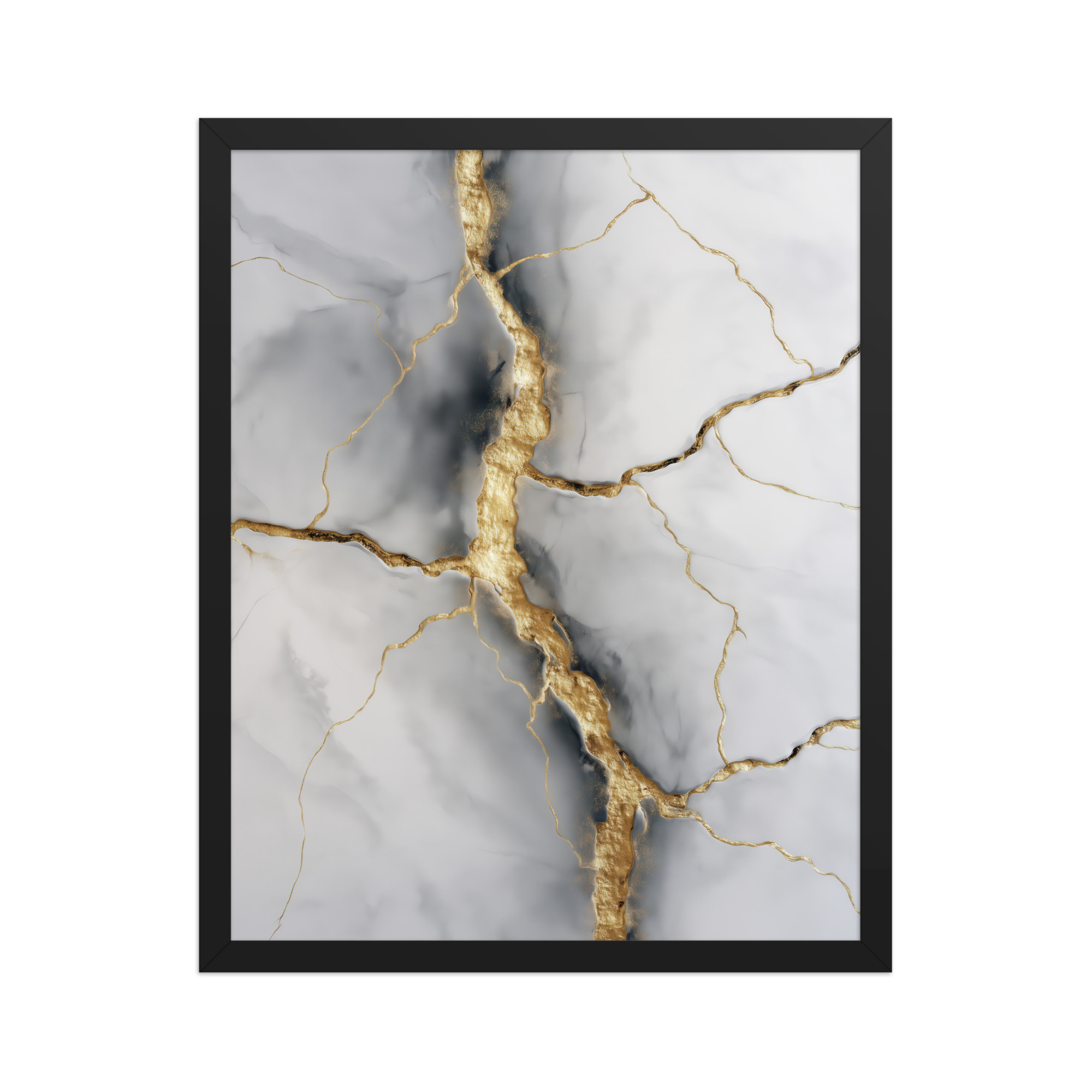 Kintsugi Cracks I — Marble Abstract with Gold Veining Wall Art — Framed Poster