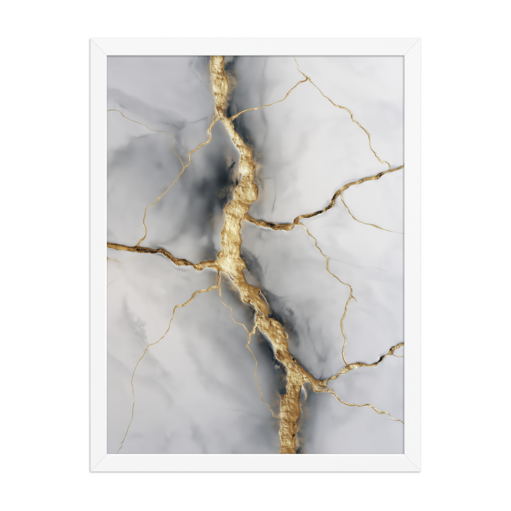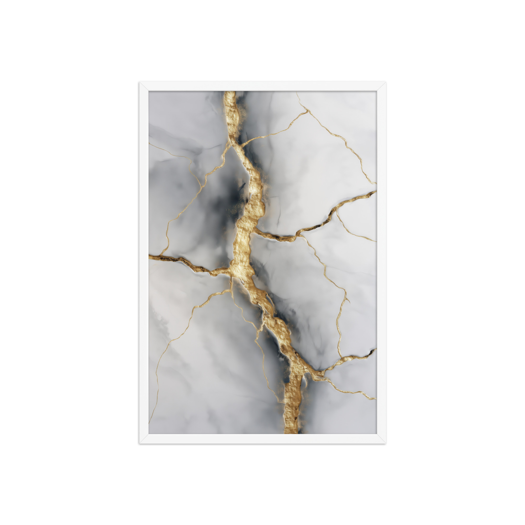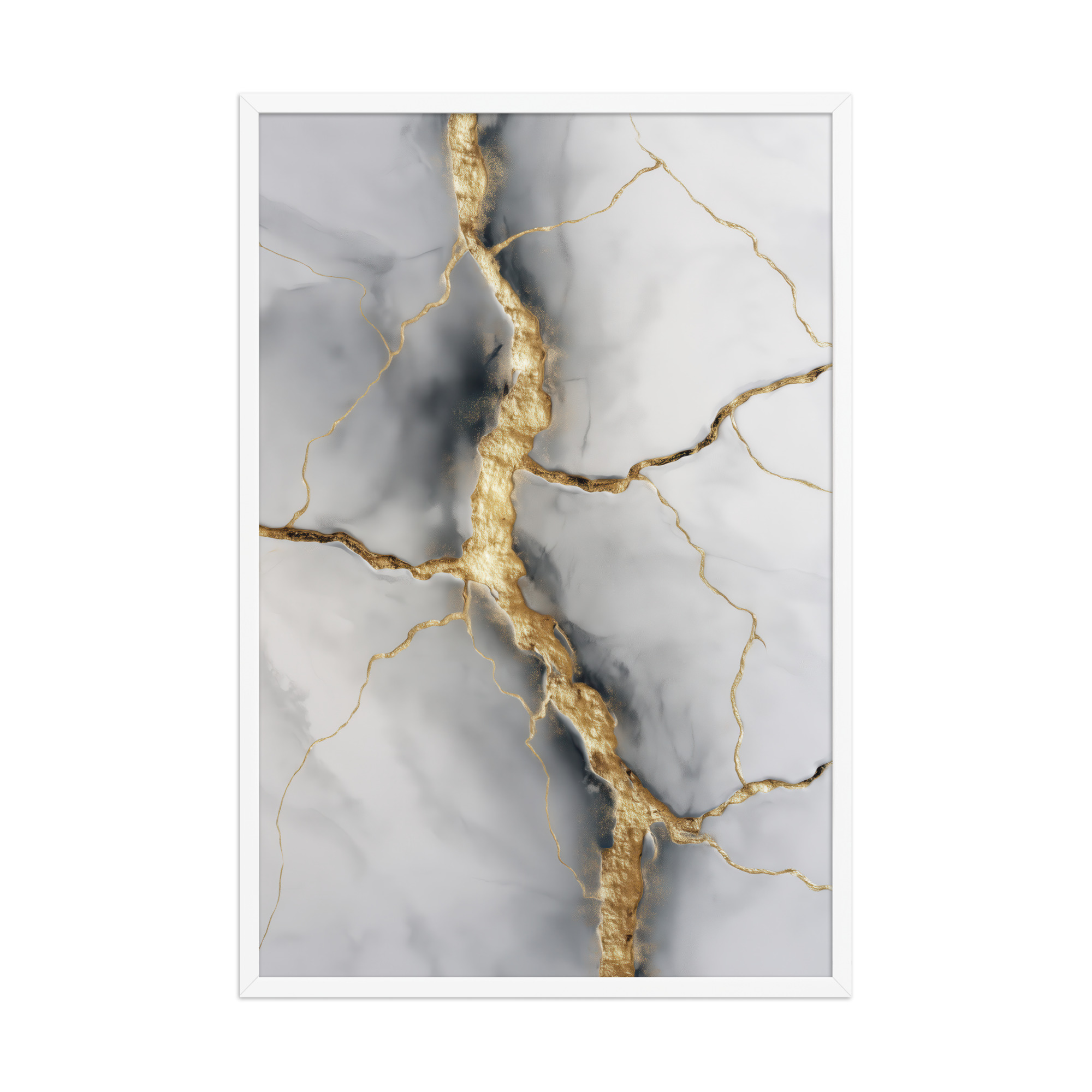 Kintsugi Cracks I — Marble Abstract with Gold Veining Wall Art — Framed Poster