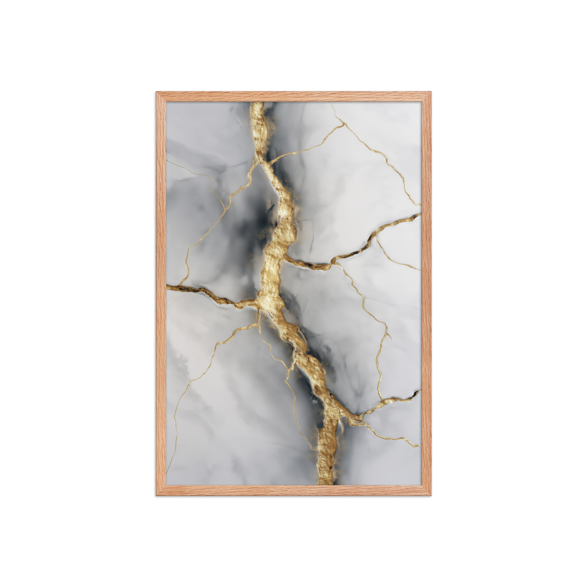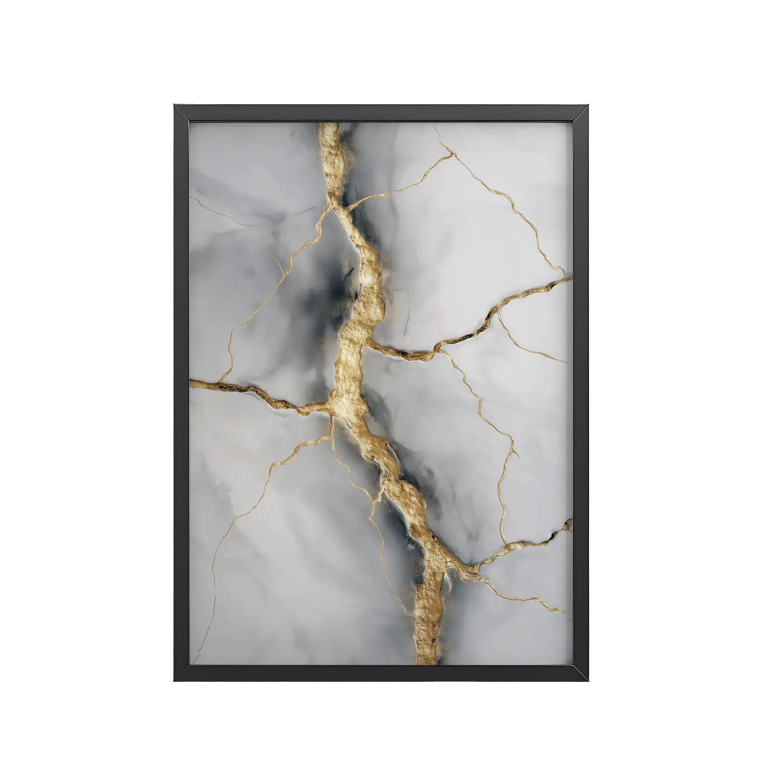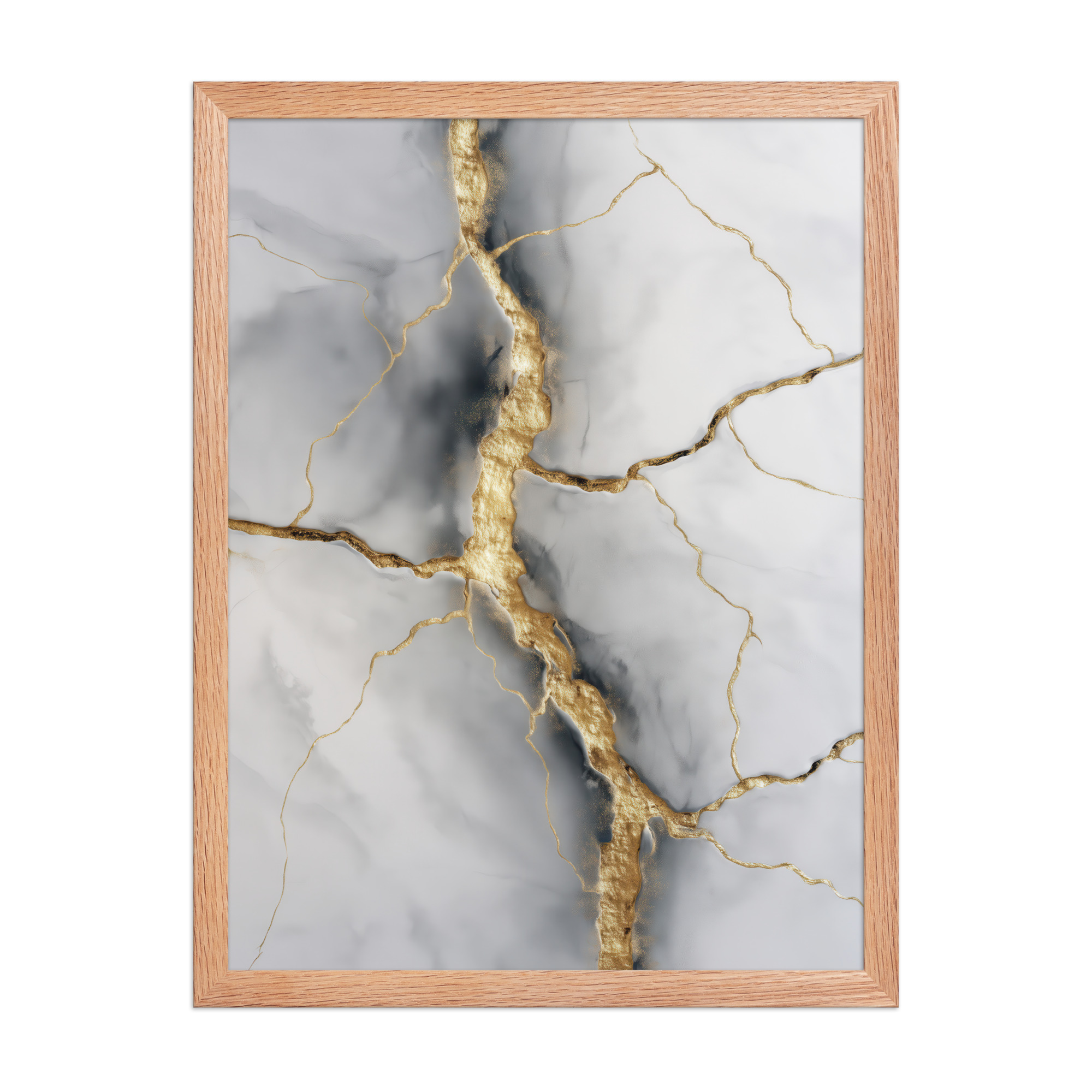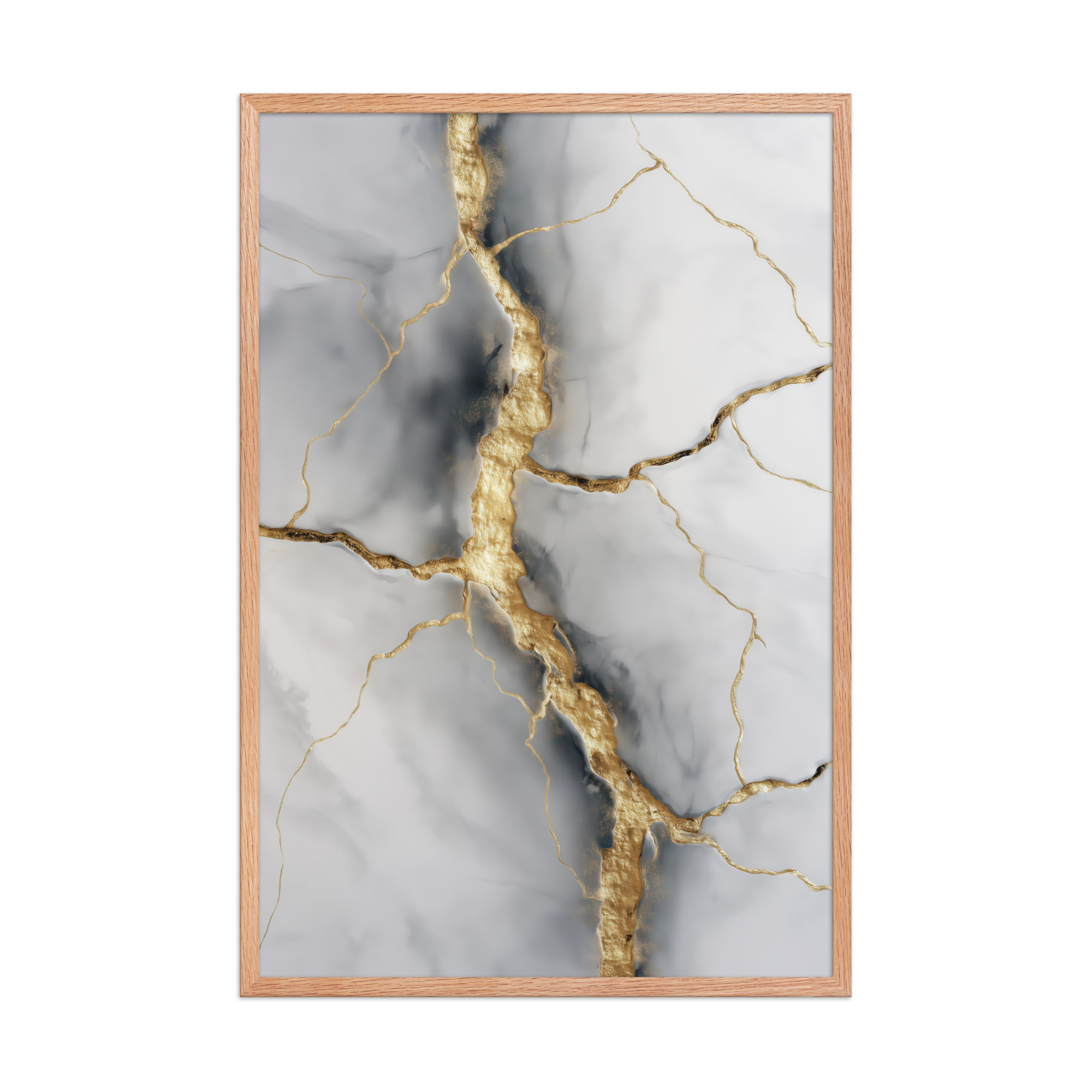 Kintsugi Cracks I — Marble Abstract with Gold Veining Wall Art — Framed Poster