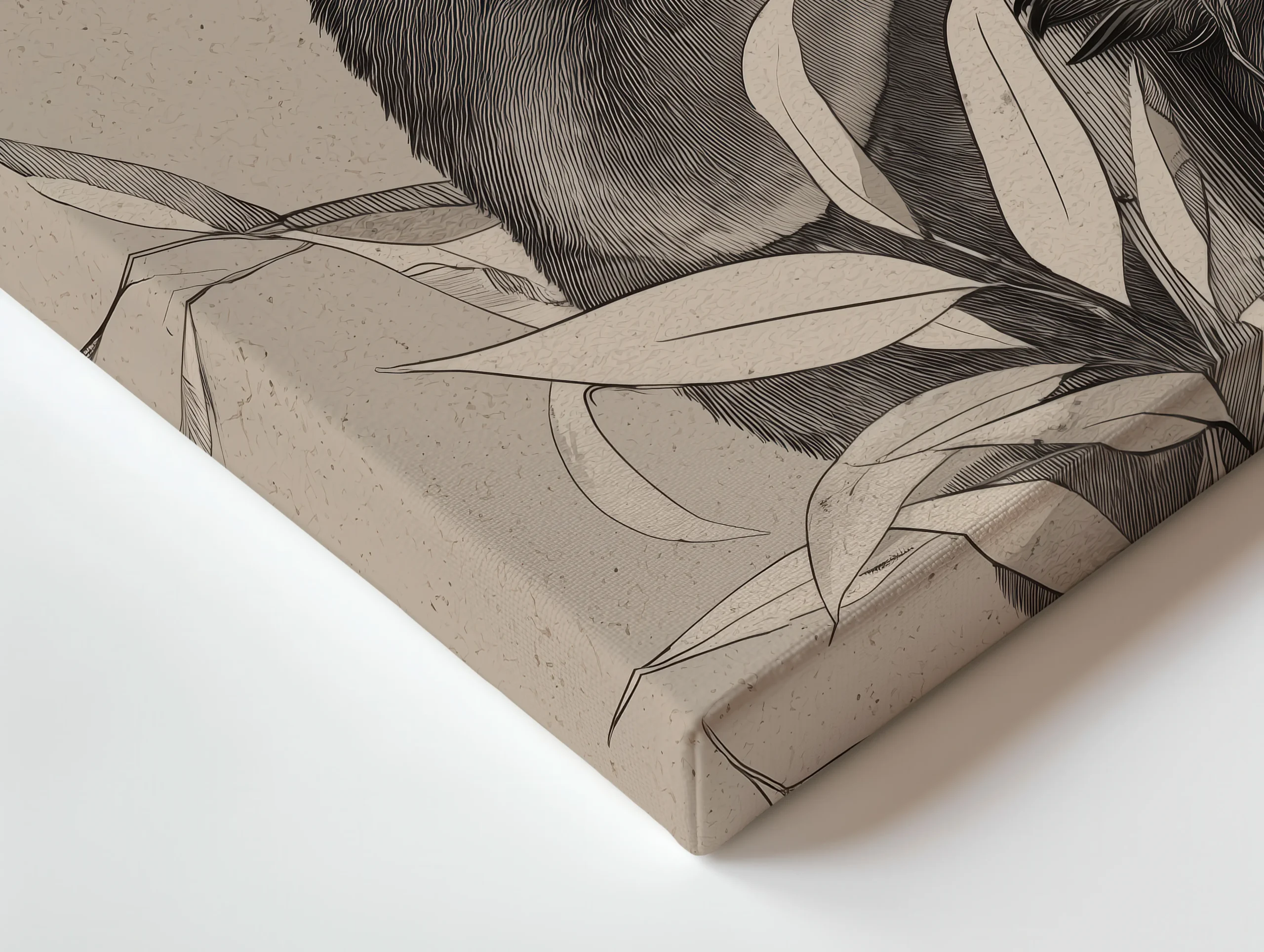 Koala Bamboo II — Detailed Koala Illustration with Bamboo Leaves Wall Decor — Thin Canvas