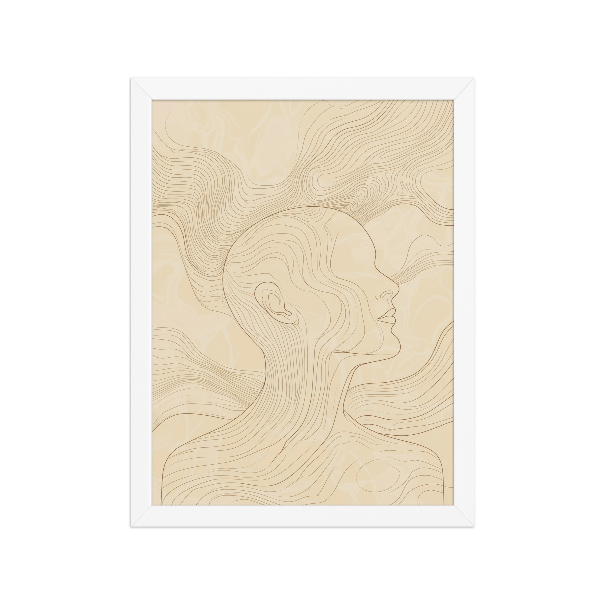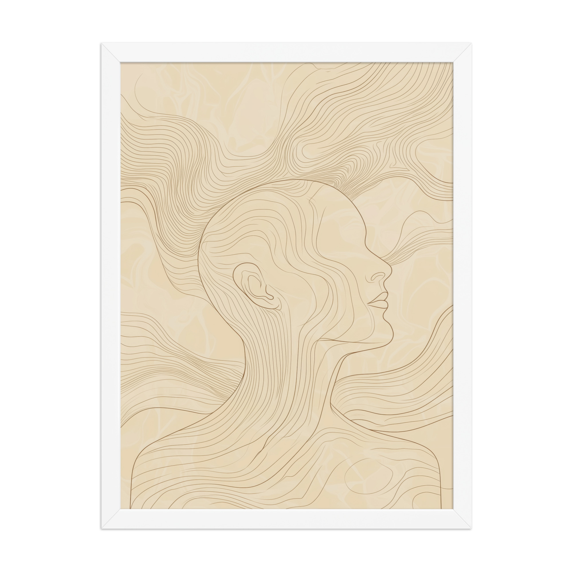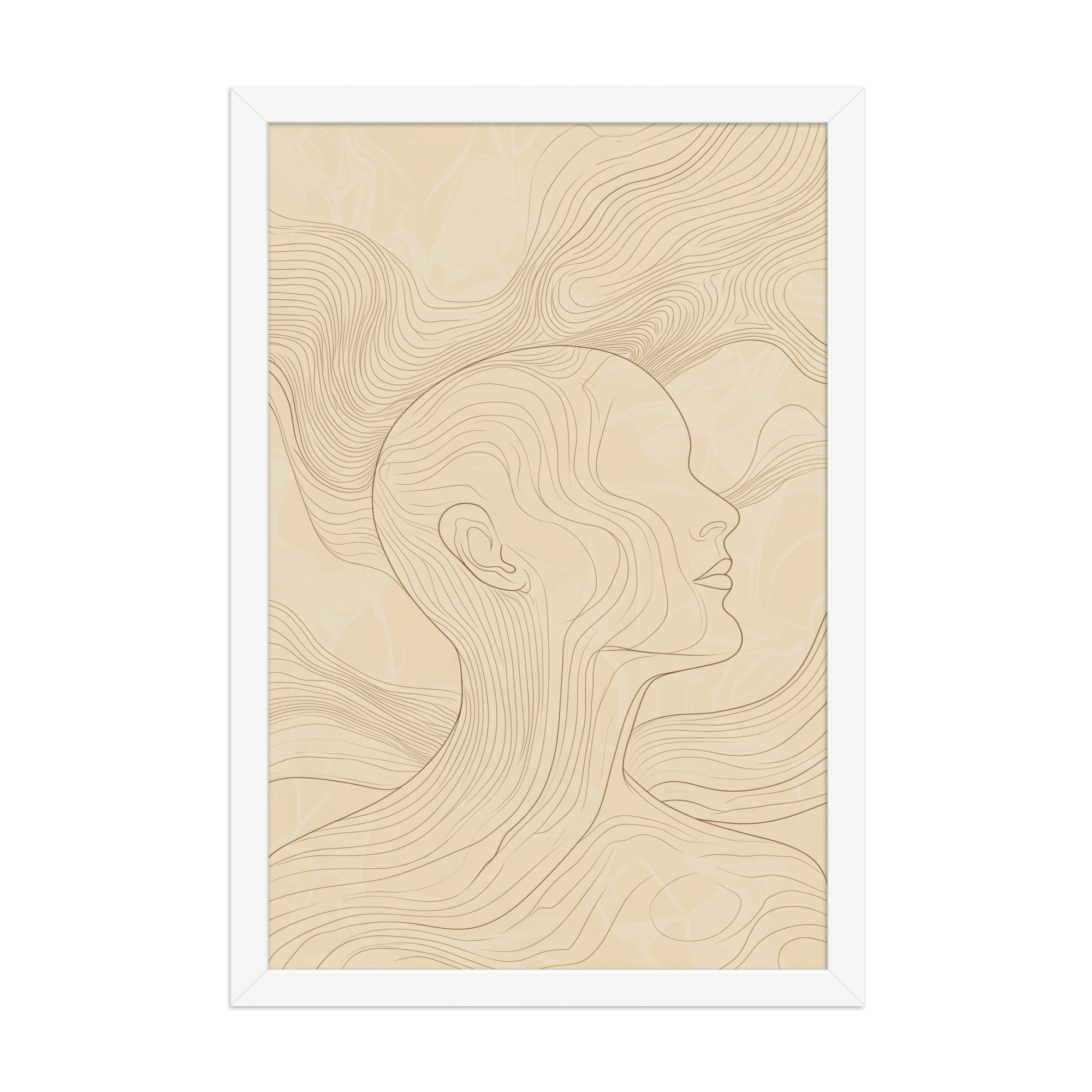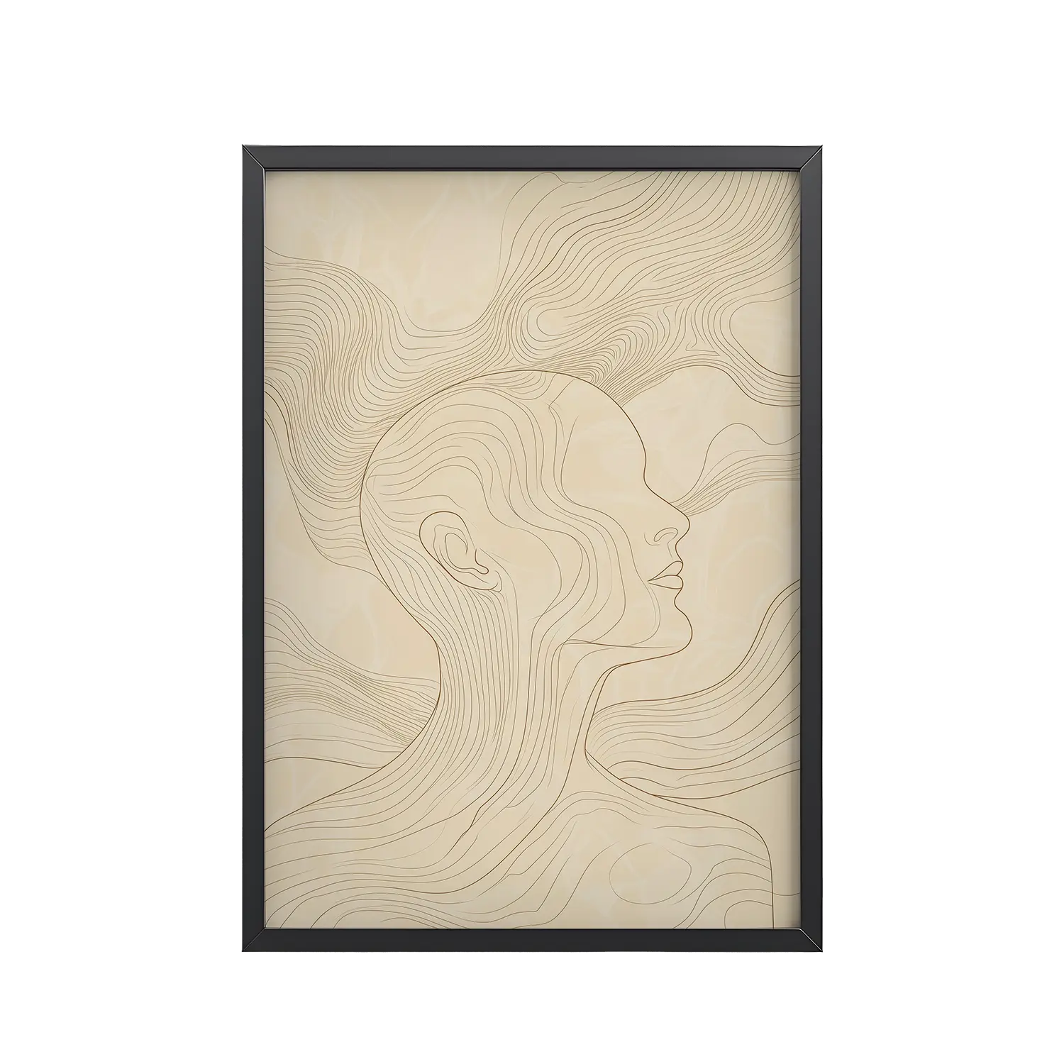 River-like contour lines form a tranquil face in profile while soft currents drift above, evoking mindfulness and quiet flow. The minimal palette keeps the mood calm and contemporary.