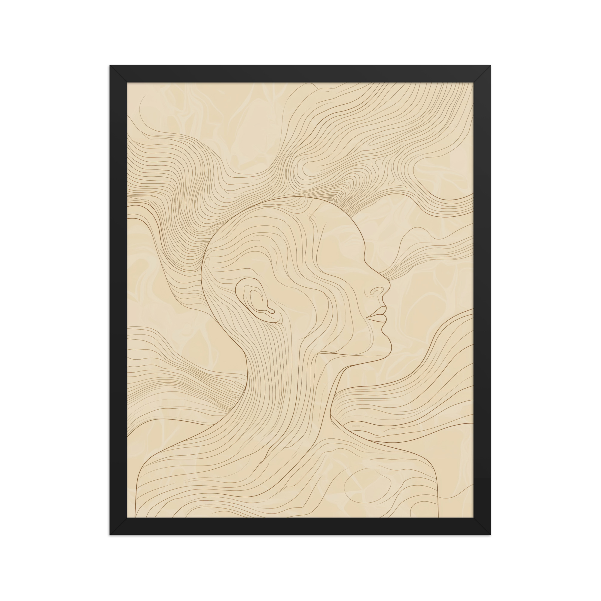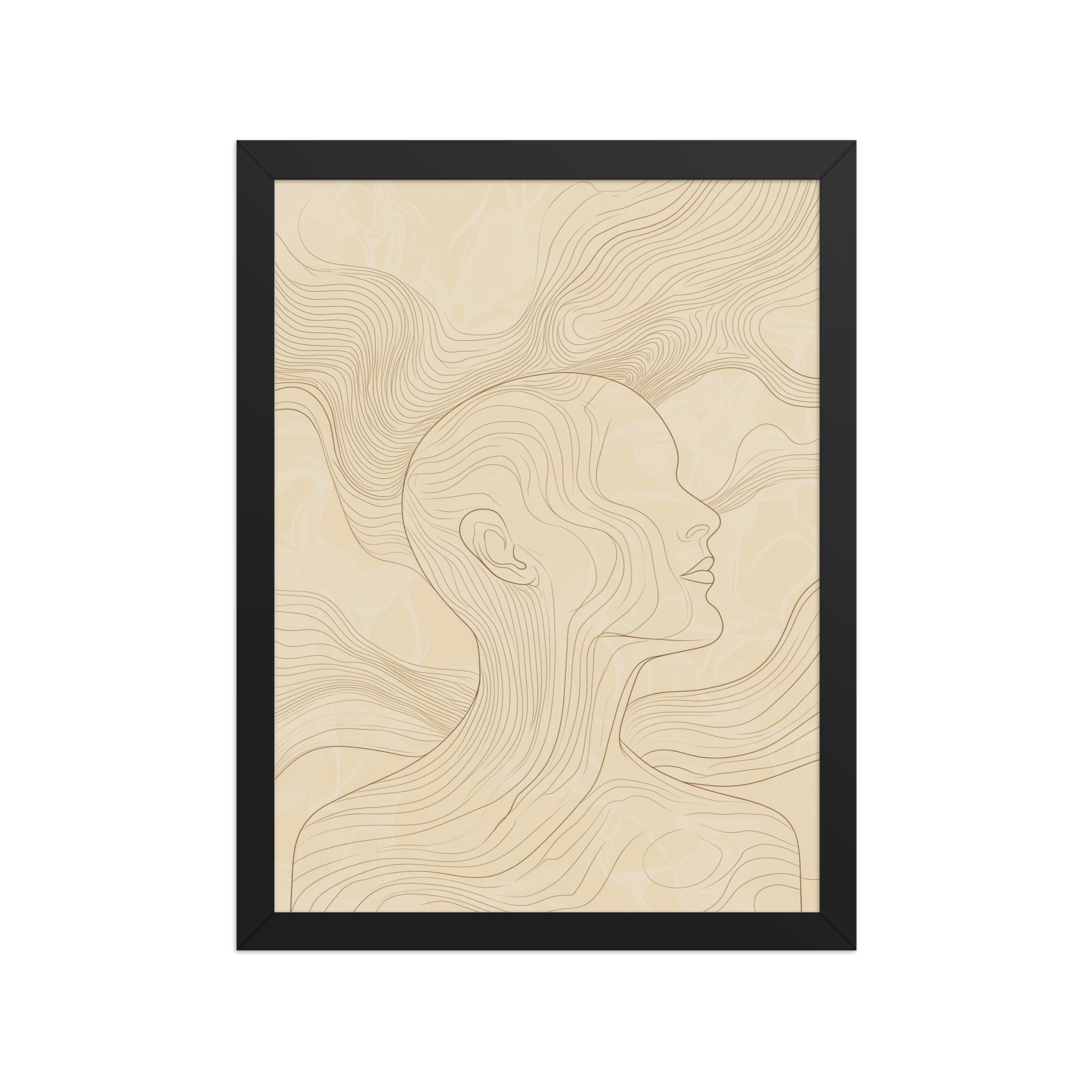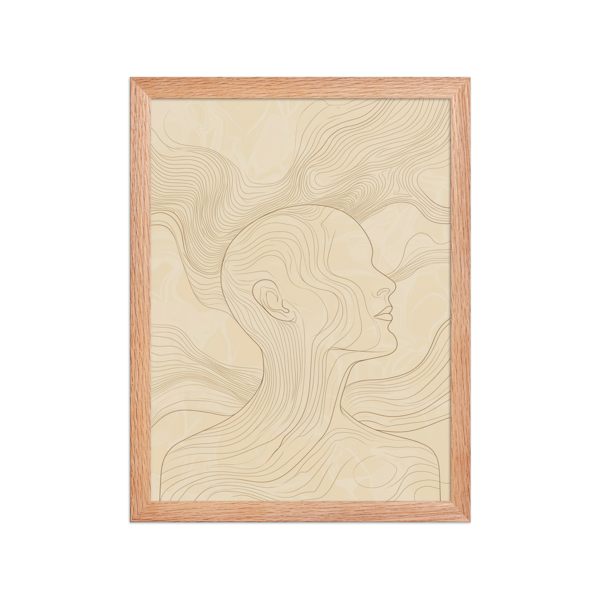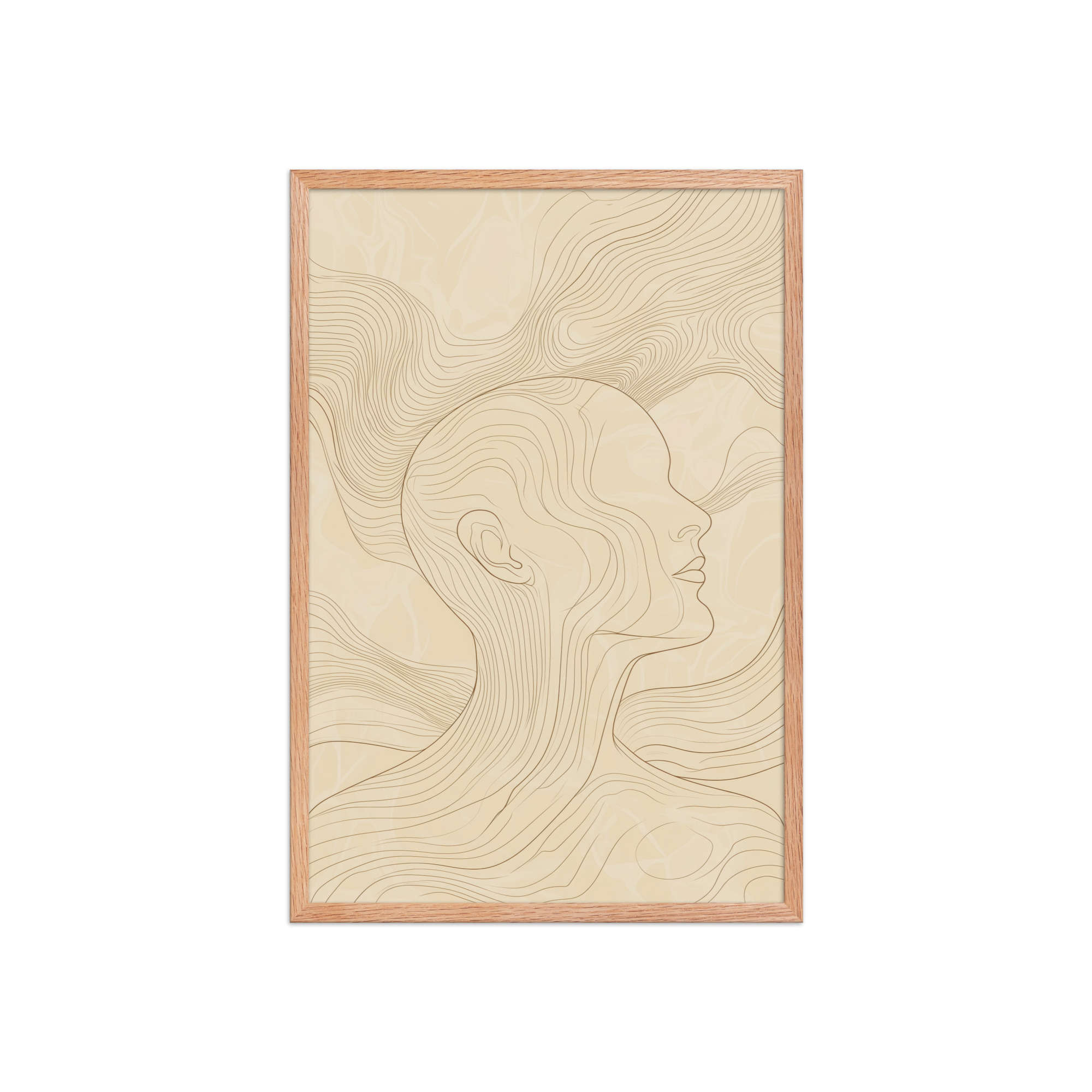 River-like contour lines form a tranquil face in profile while soft currents drift above, evoking mindfulness and quiet flow. The minimal palette keeps the mood calm and contemporary.