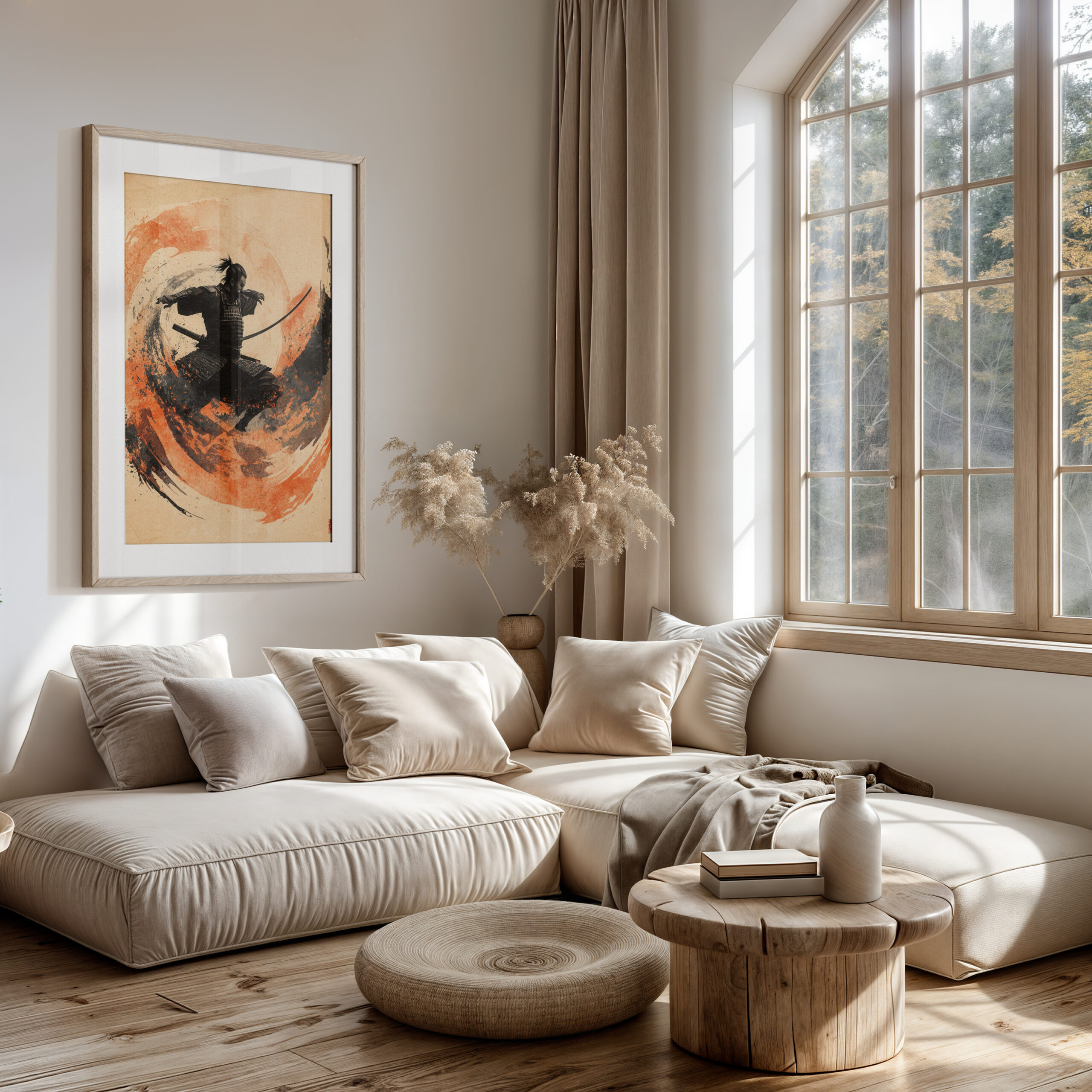 Samurai Swirl – Brush-Stroke Motion and Warrior Focus Wall Decor – Framed Poster