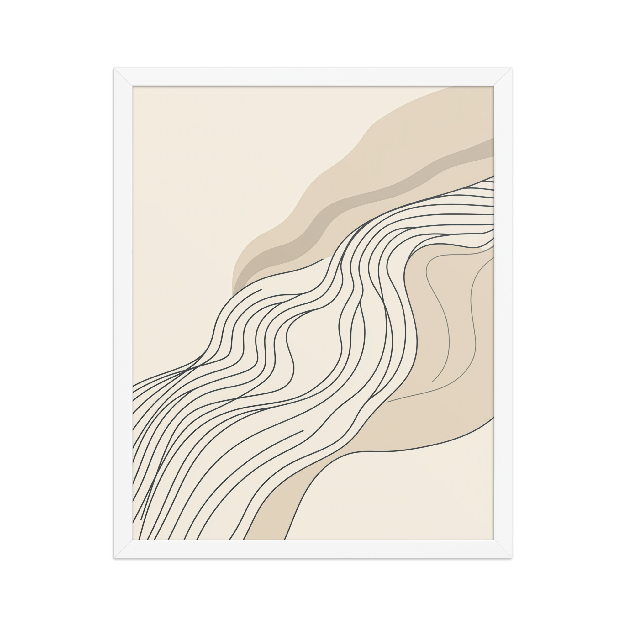 Soft layers of ivory, sand, and taupe form a calm backdrop for graceful, topographic lines. The minimalist flow and generous negative space bring an effortless Japandi balance to living rooms, bedrooms, and serene workspaces.