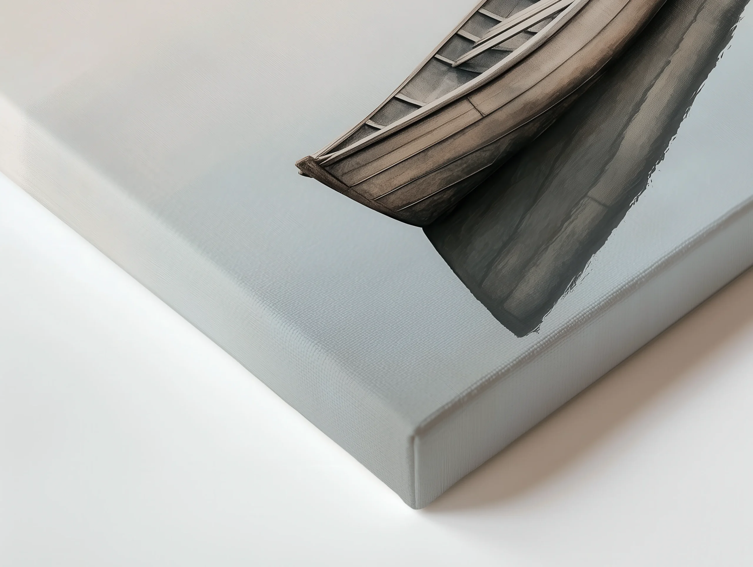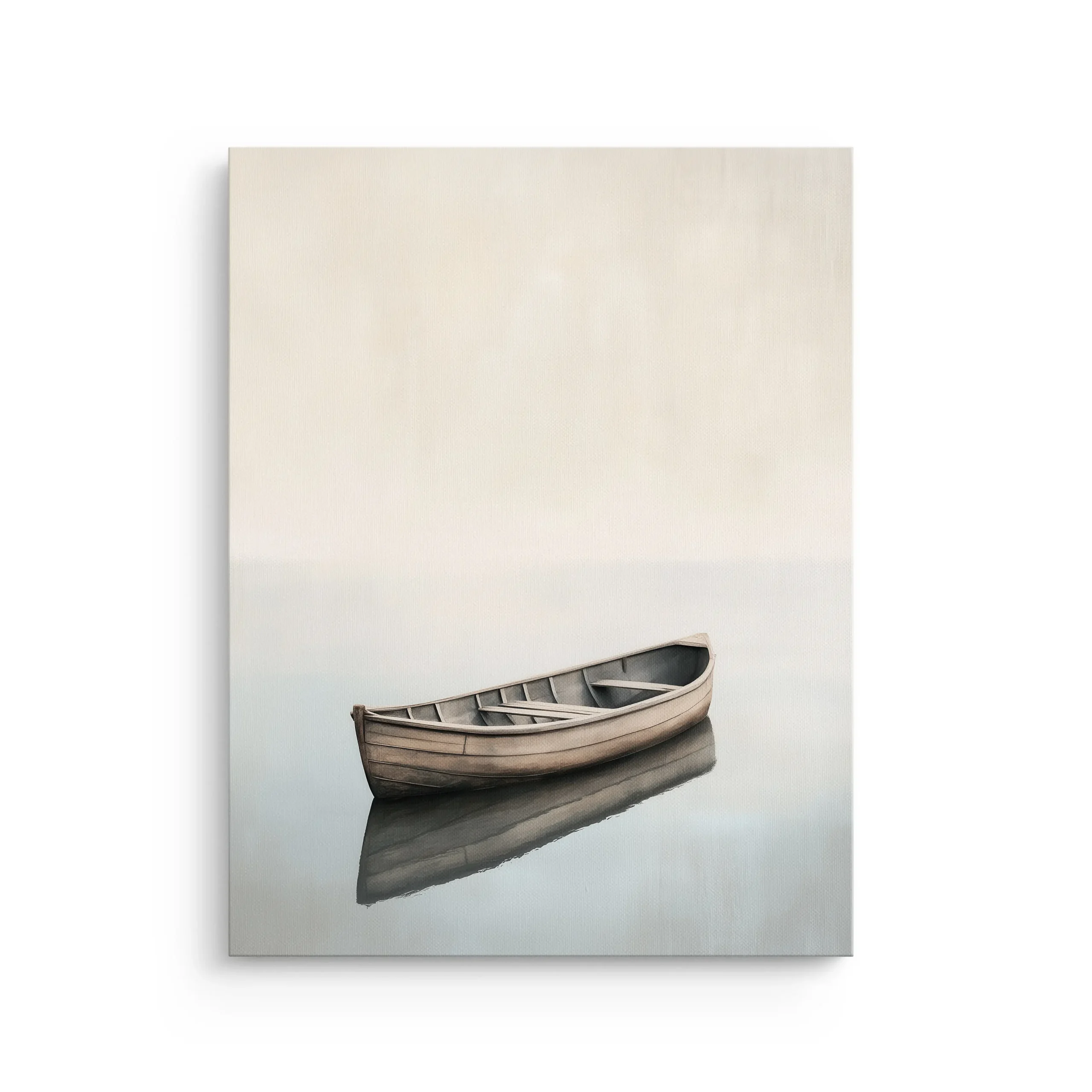 Minimalist Japandi rowboat artwork floating on still water, designed to bring quiet calm and airy balance to modern interiors, printed on a premium thin canvas and ready to hang.