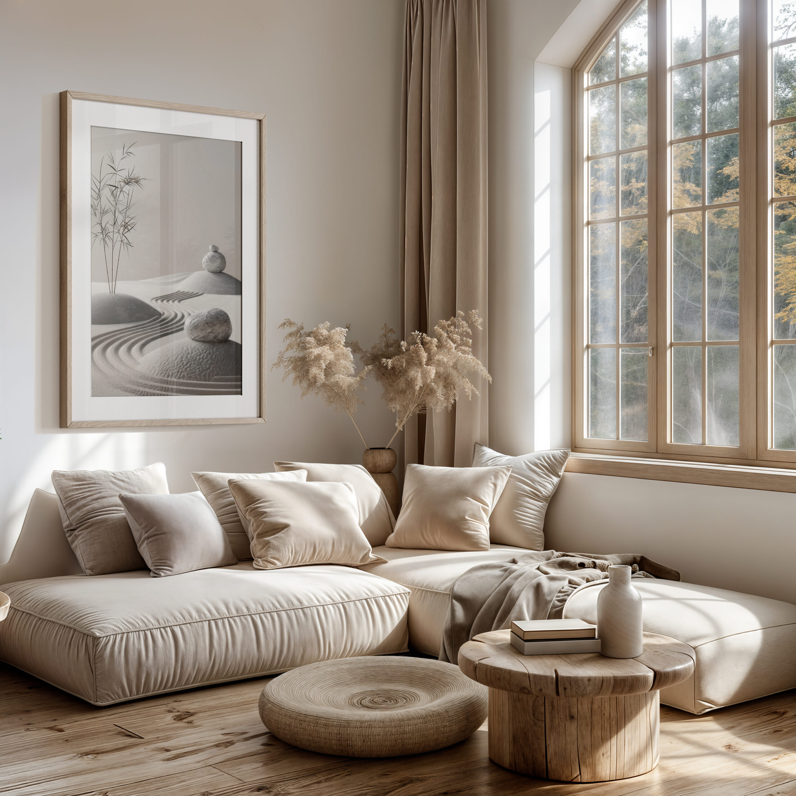 - Neutral, soft tones that pair beautifully with Japandi and Scandinavian decor