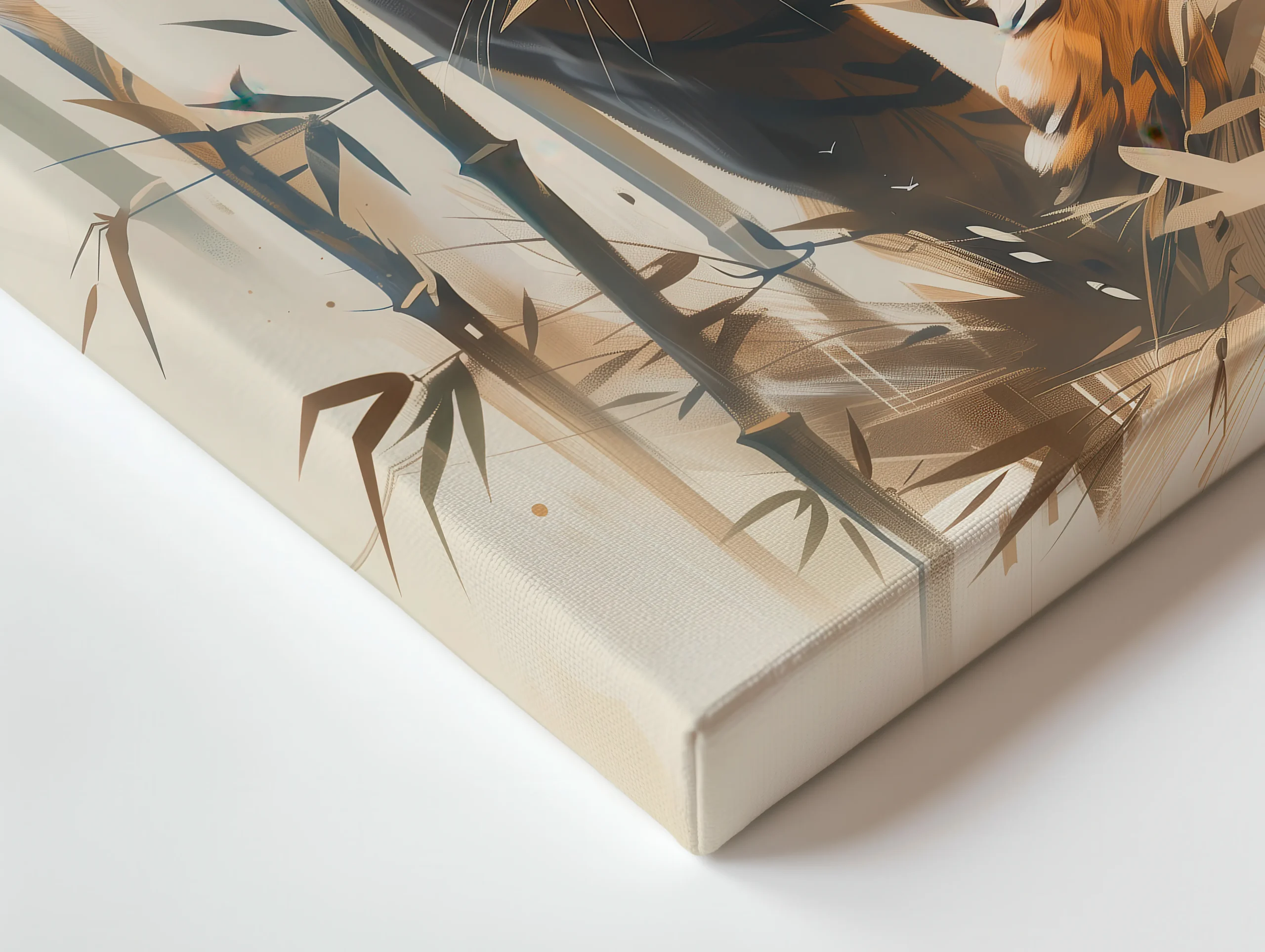 Tiger in Bamboo Mist — Wildlife Tiger in Dynamic Jungle Wall Art — Thin Canvas