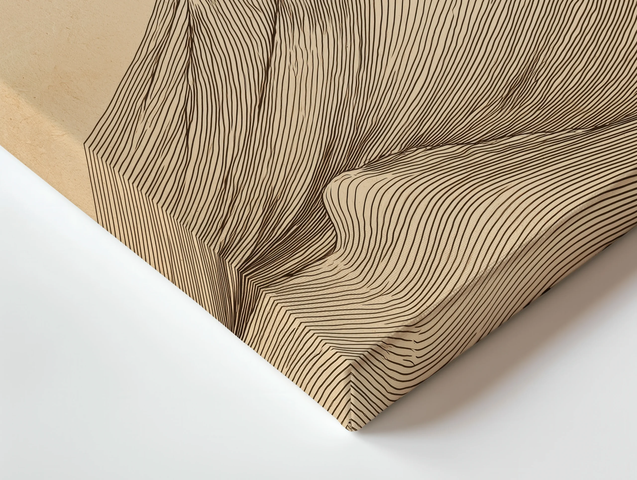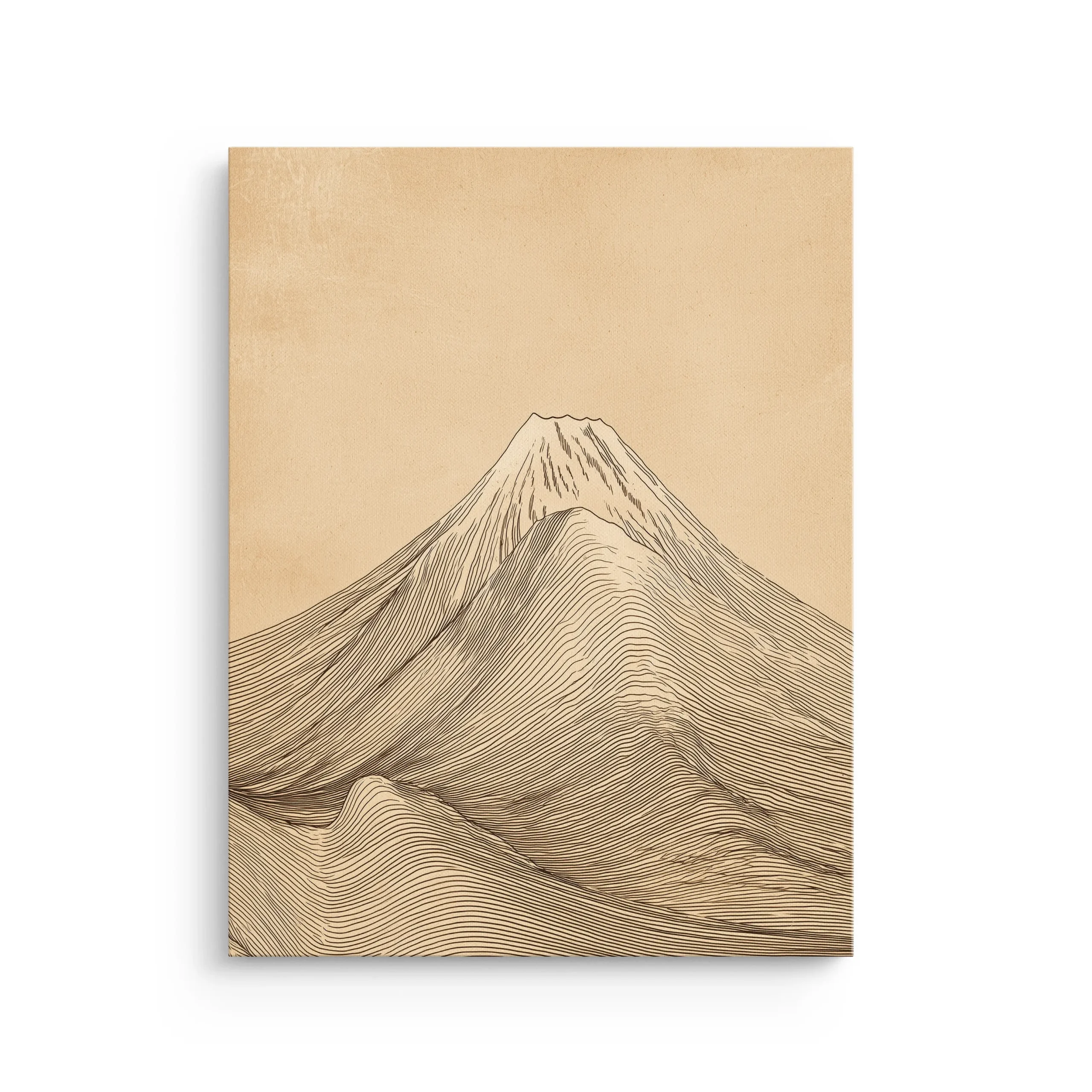 Mount Fuji is drawn in soft, flowing contour lines, creating a quiet topographic rhythm that feels balanced, modern, and grounded.