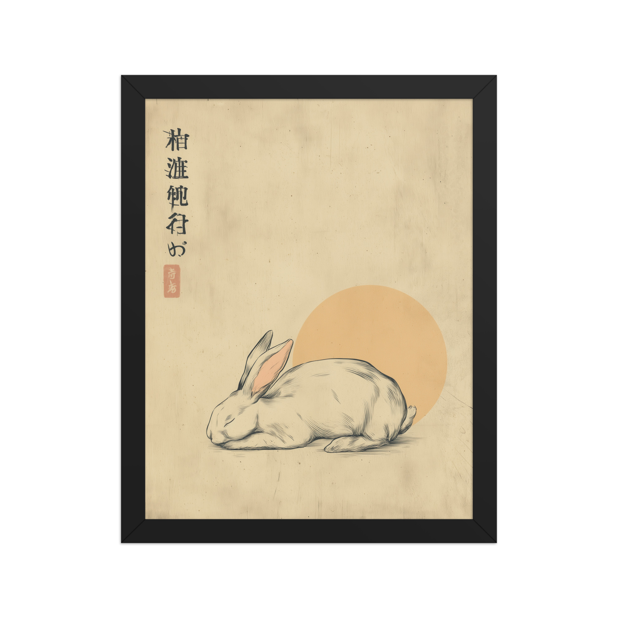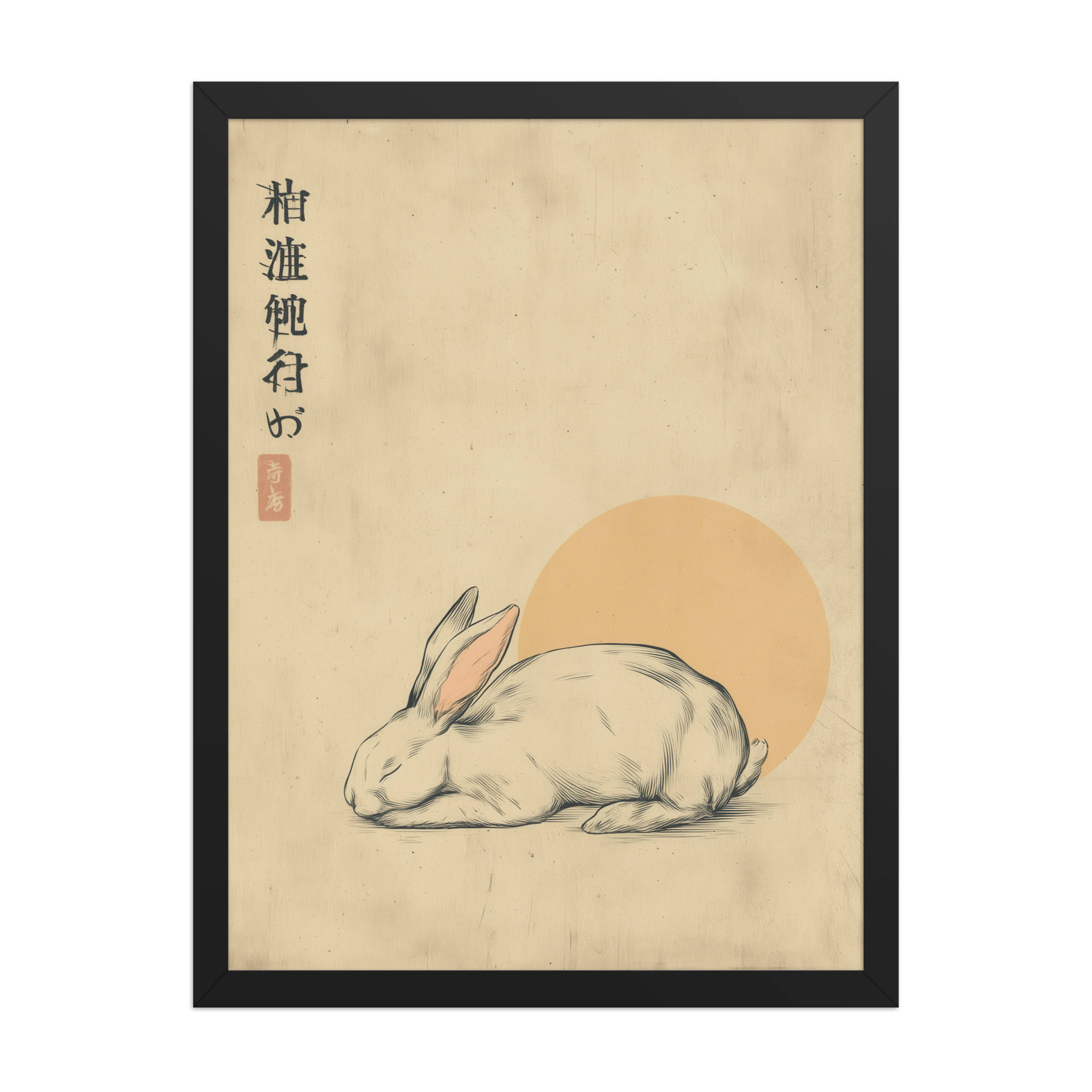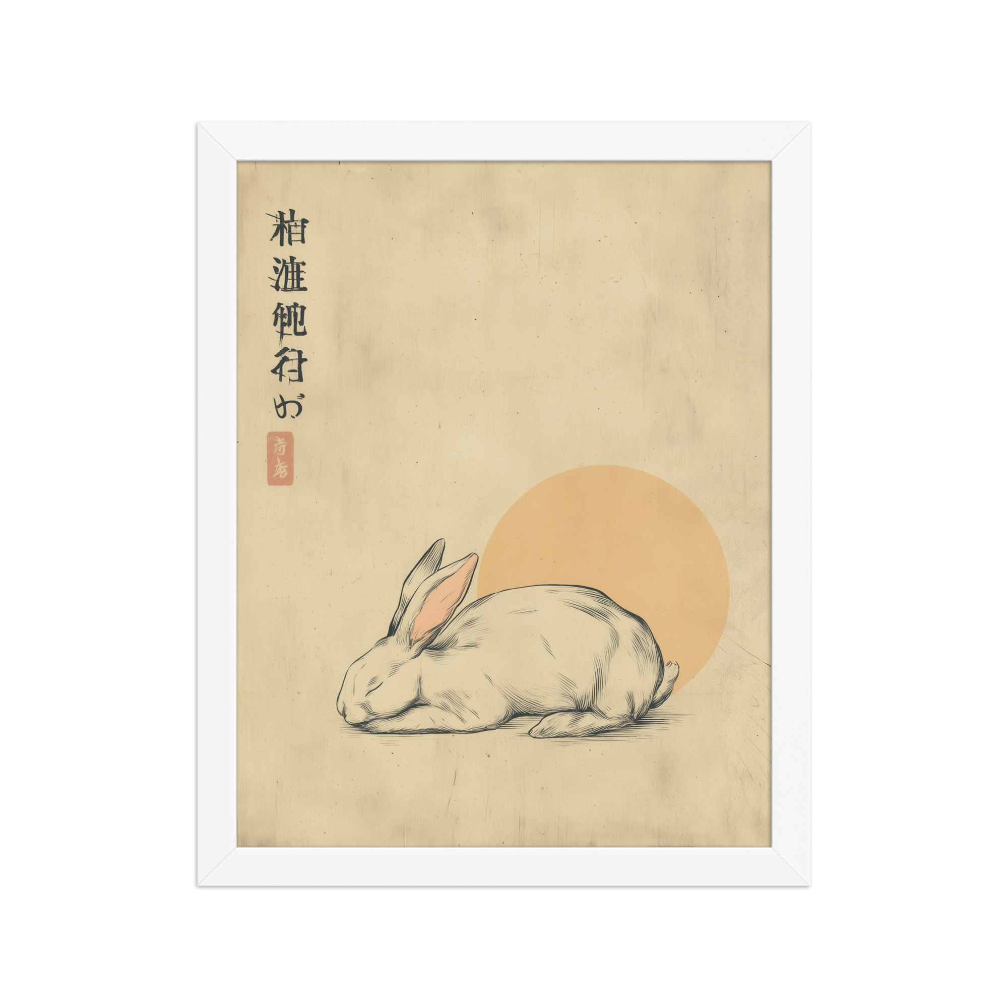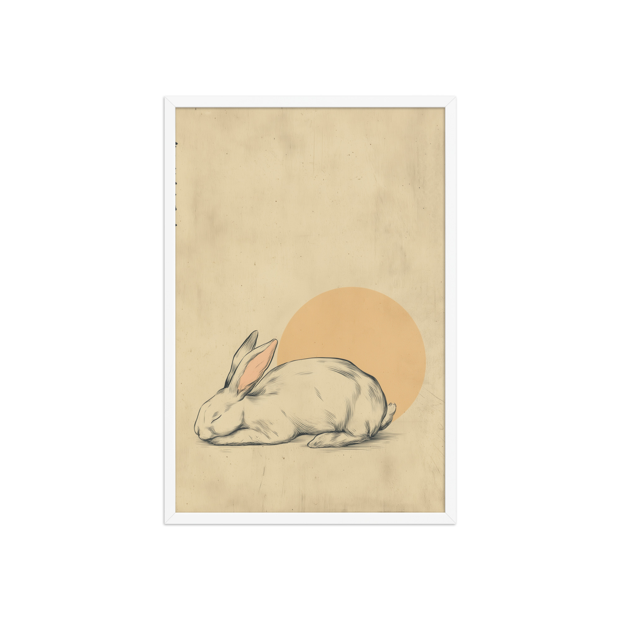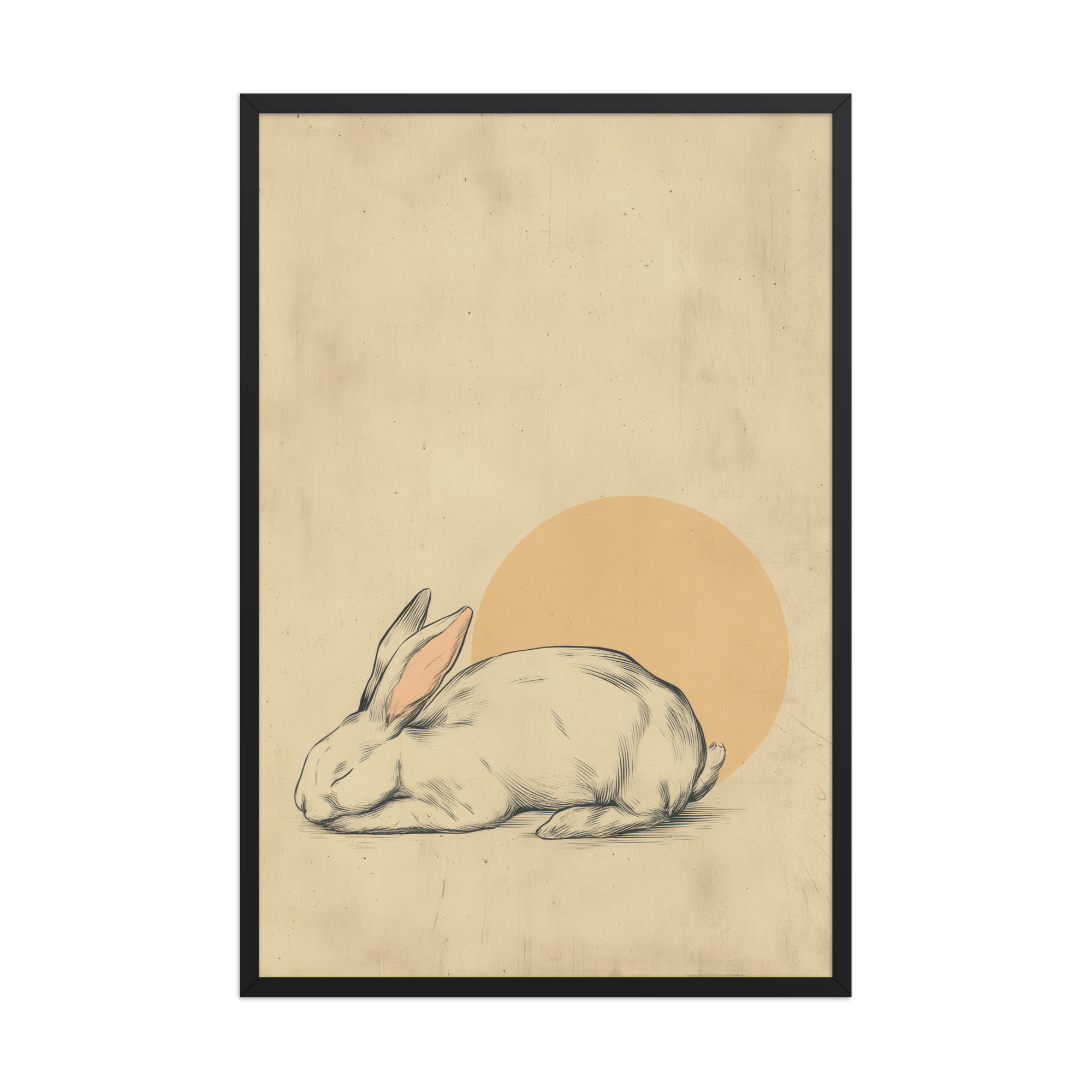 Zen Rabbit — Minimalist Rabbit with Rising Sun Wall Decor — Framed Poster