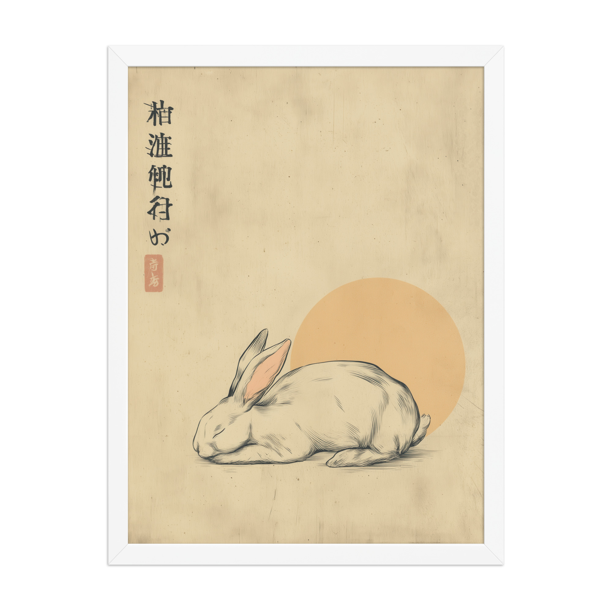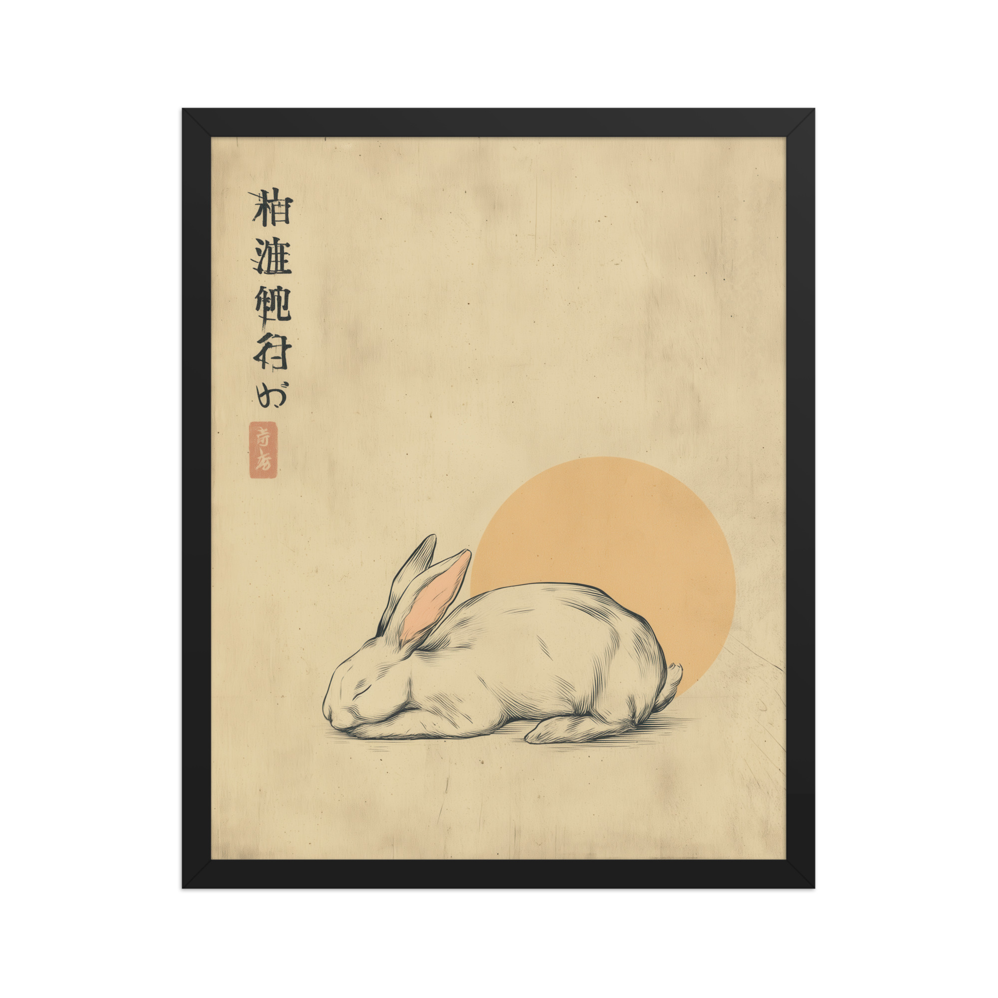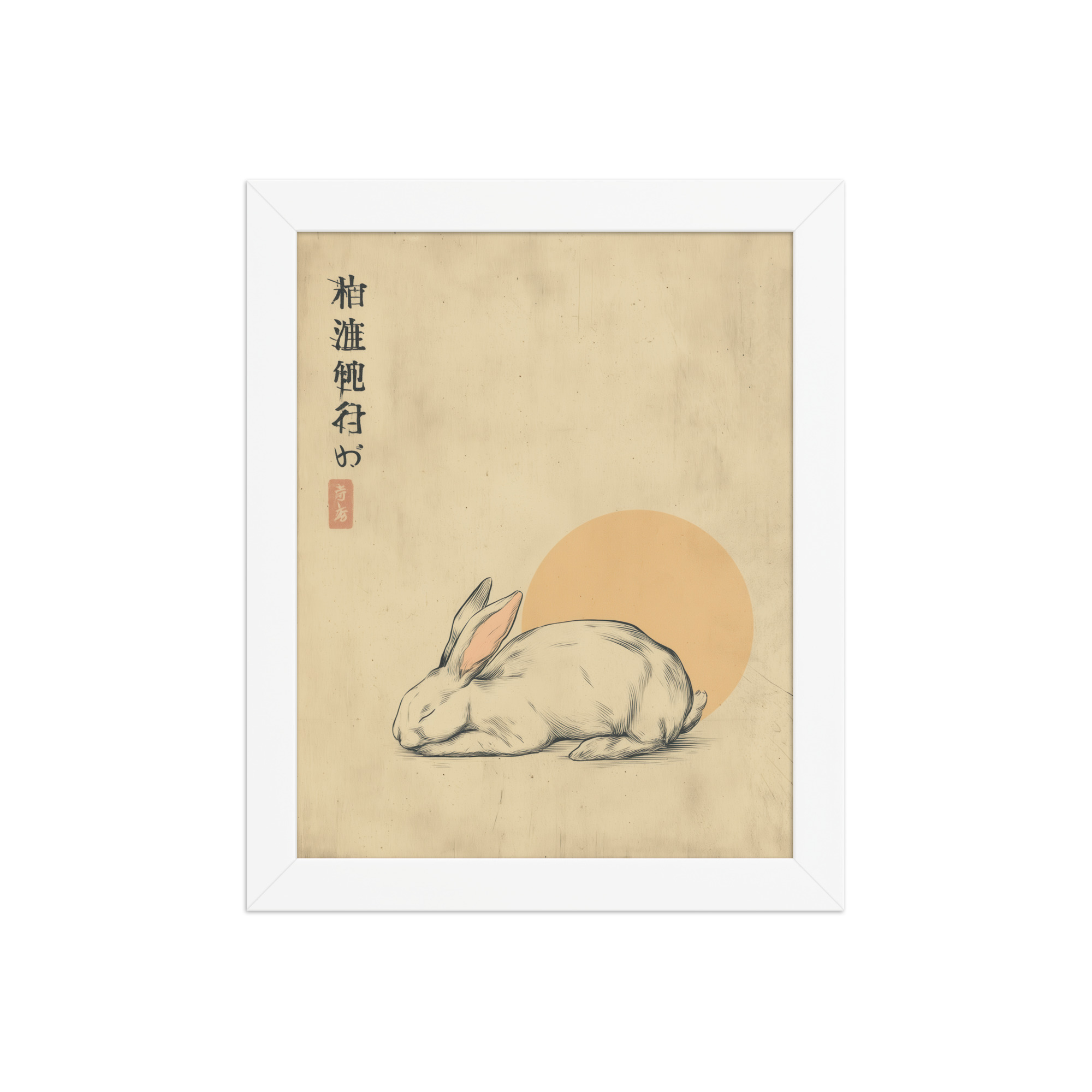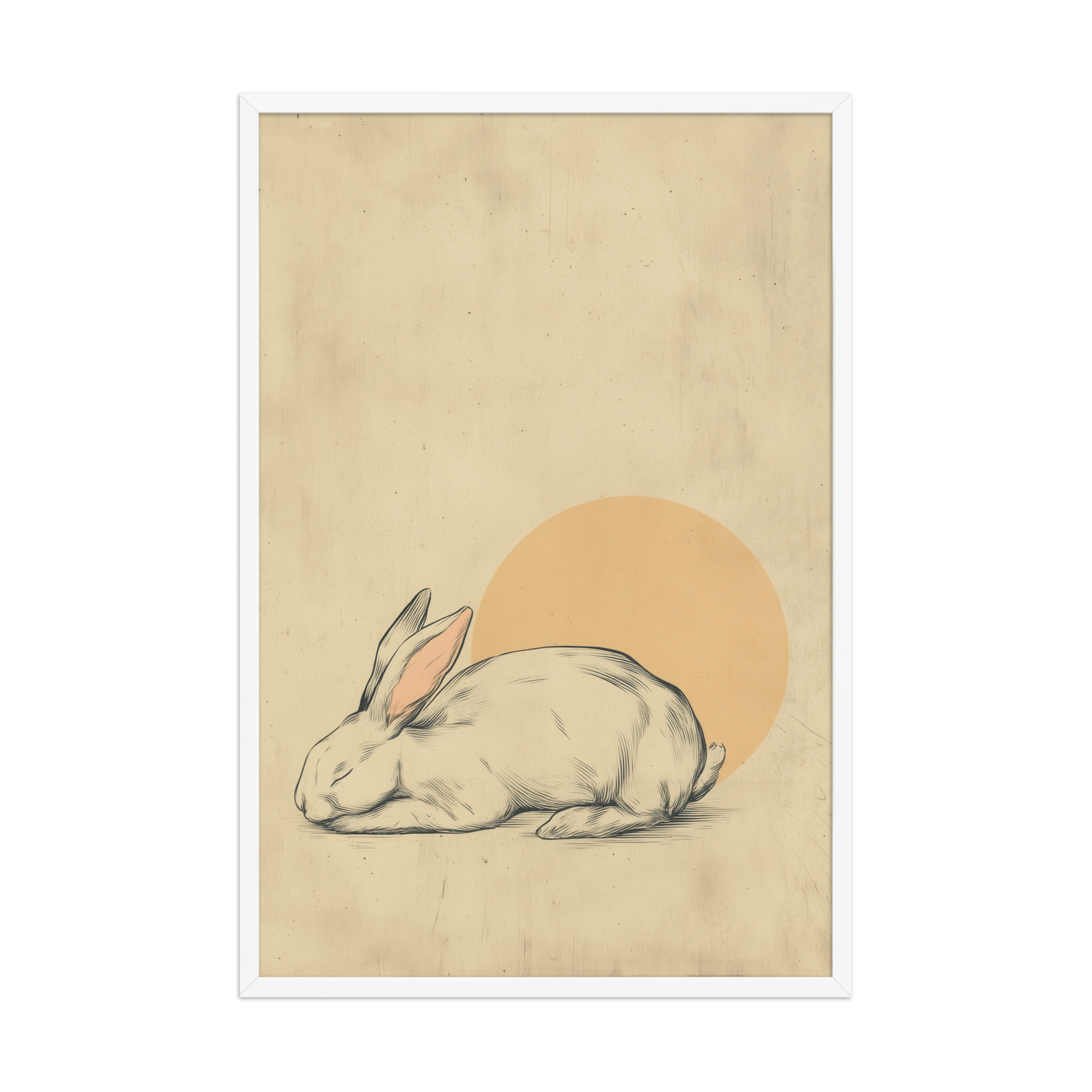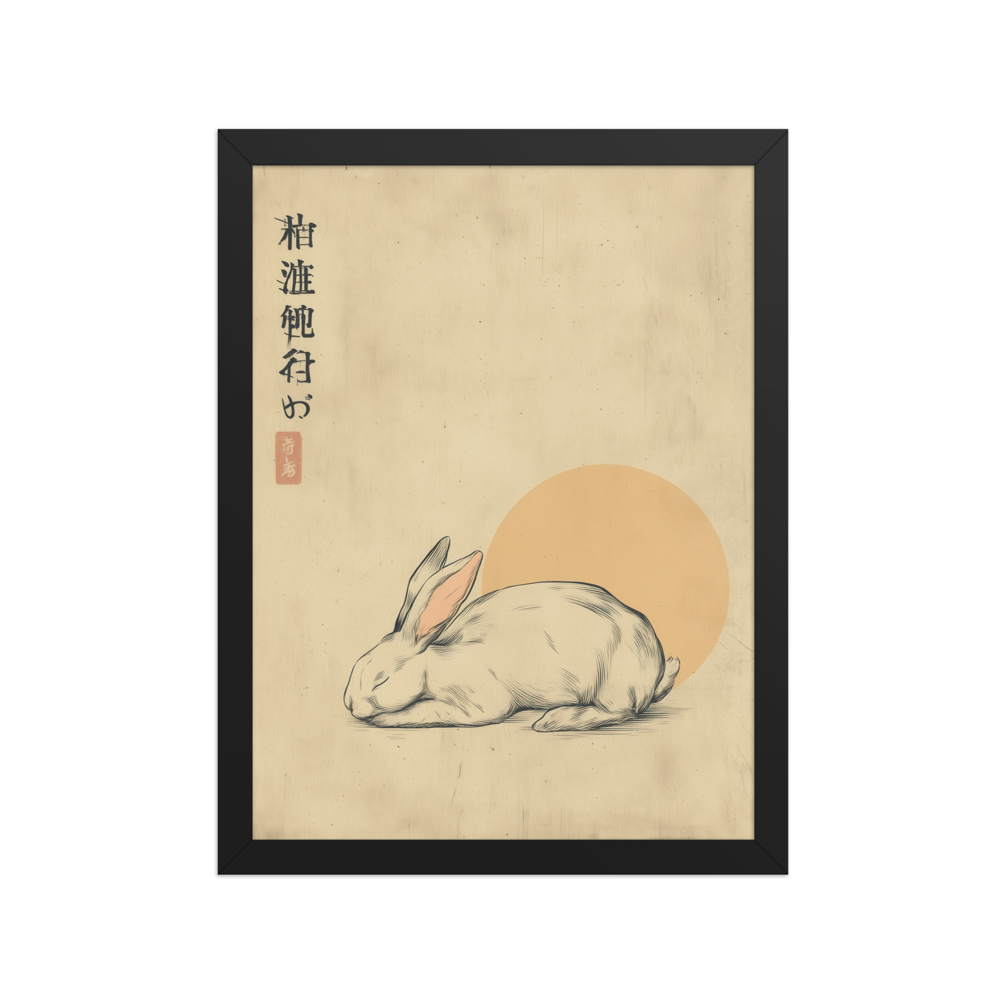 Zen Rabbit — Minimalist Rabbit with Rising Sun Wall Decor — Framed Poster